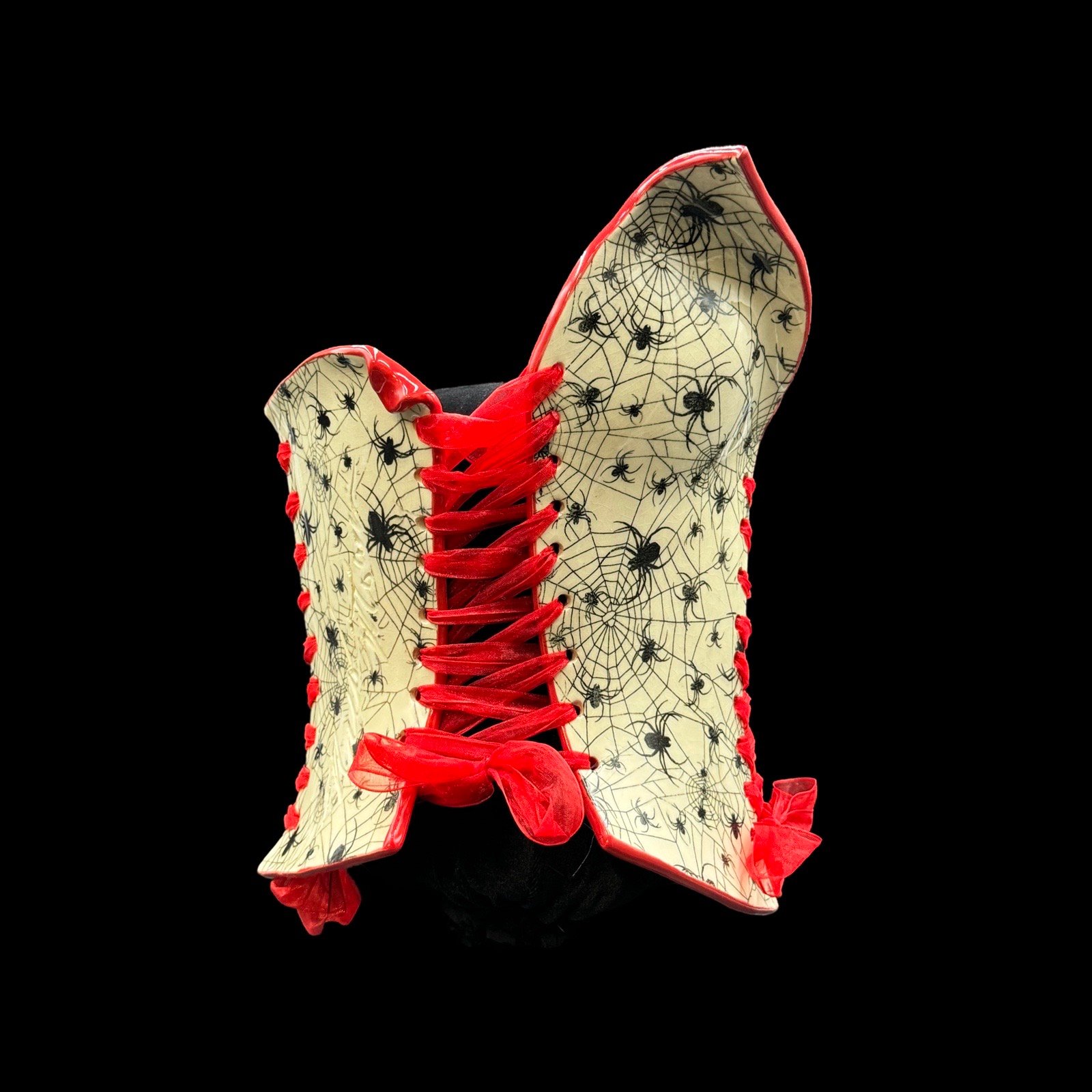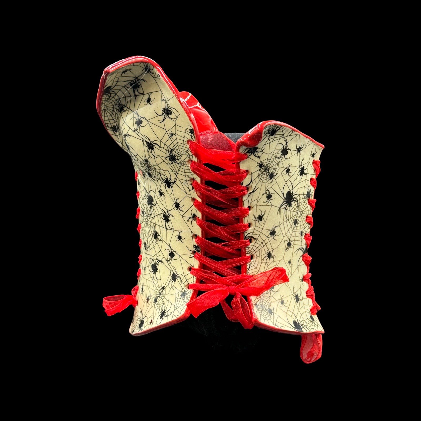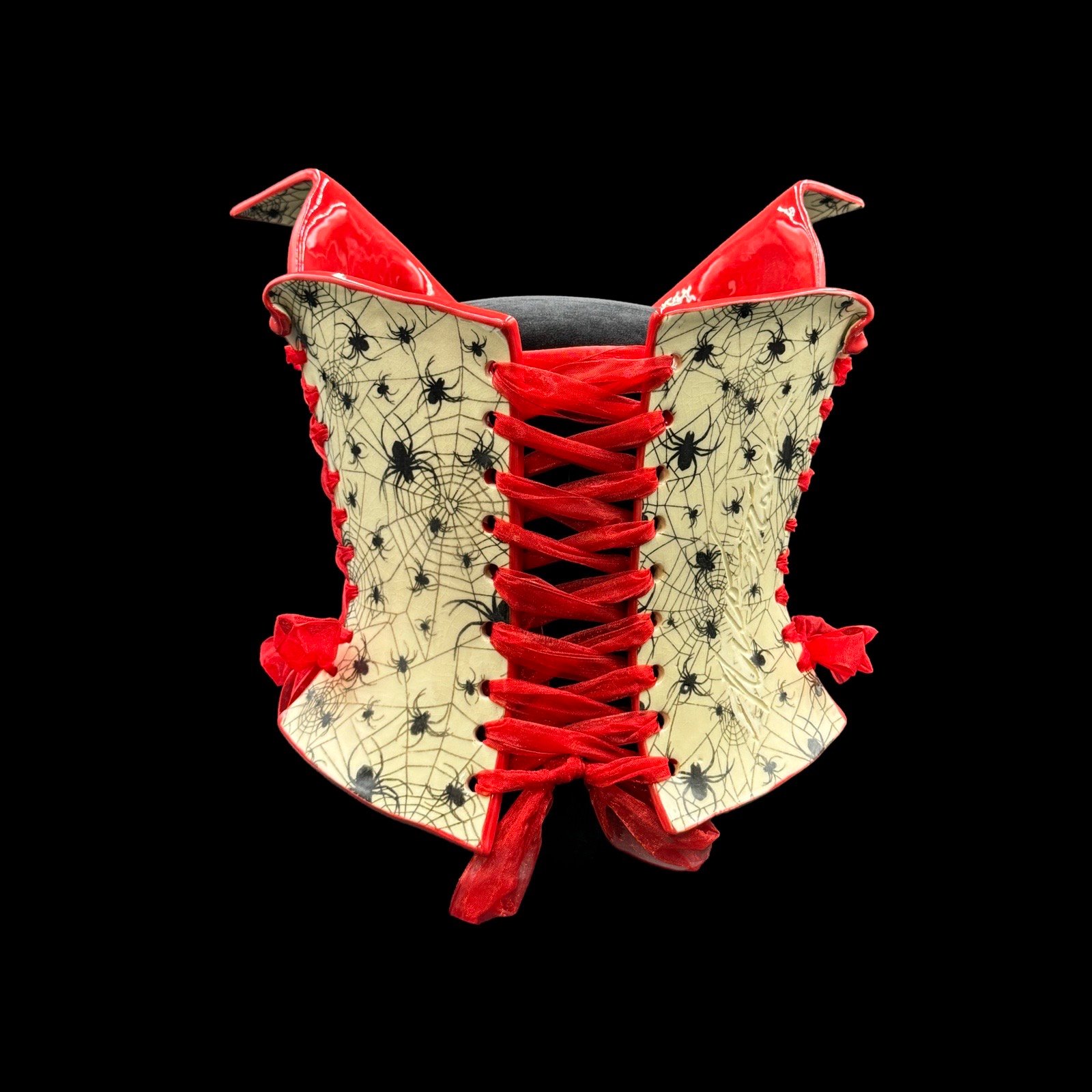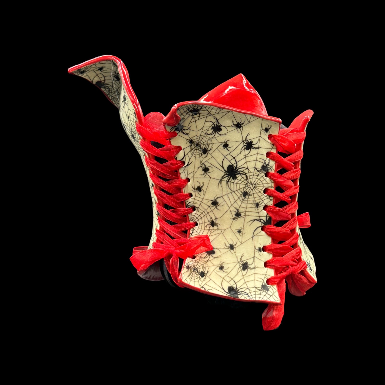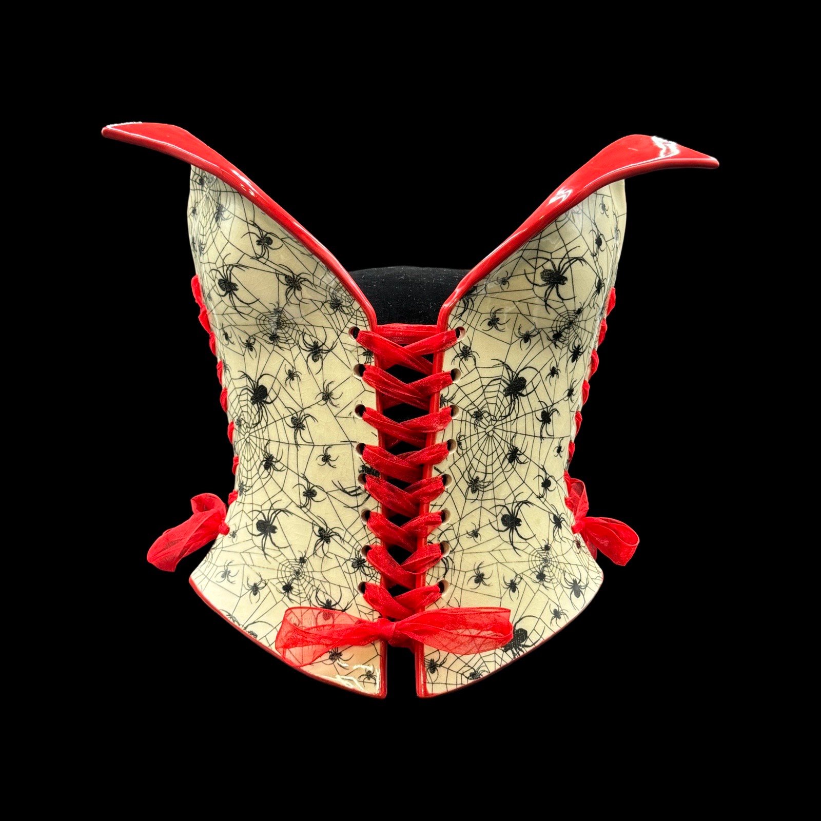 Spider Web with Red Collar wearable ceramic corset by: Nicole Moan