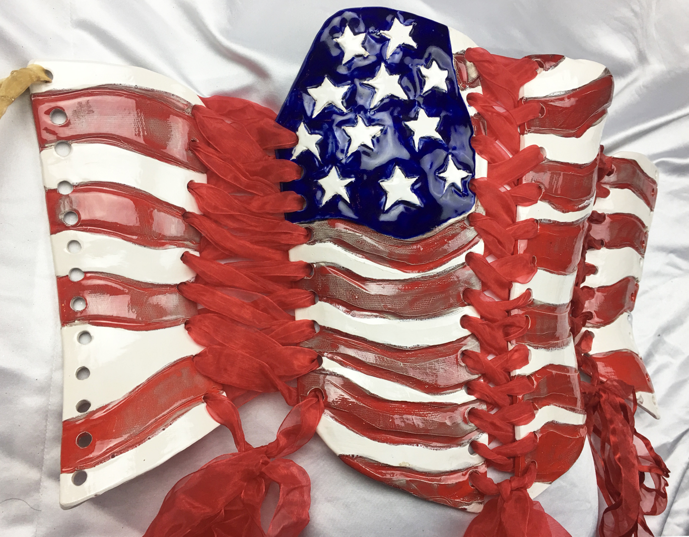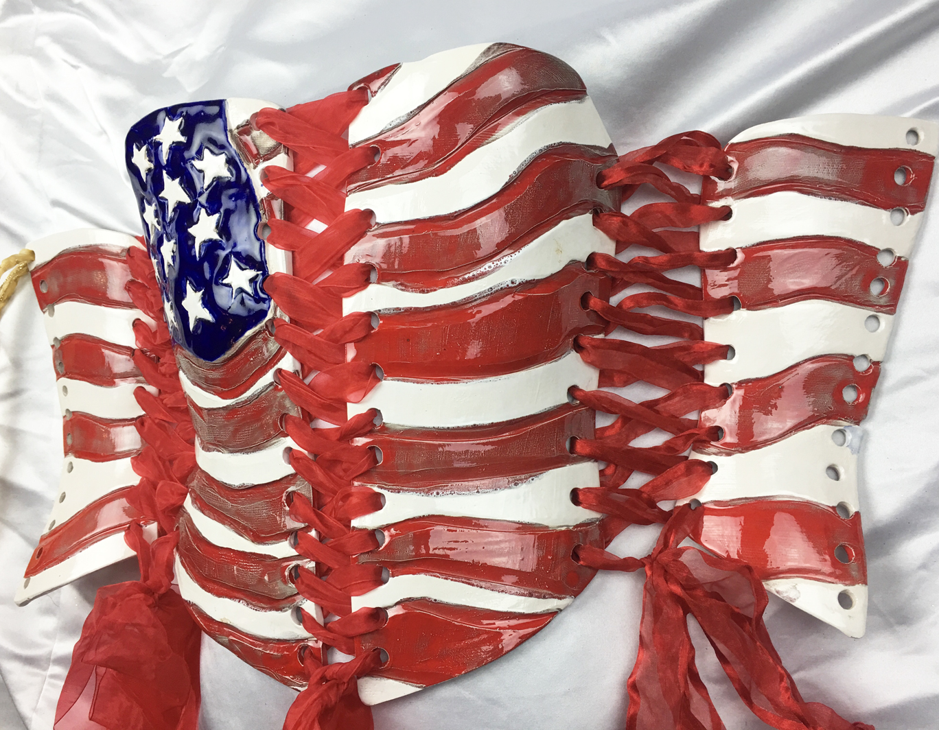 Stars and Stripes Male wearable ceramic corset by: Nicole Moan
