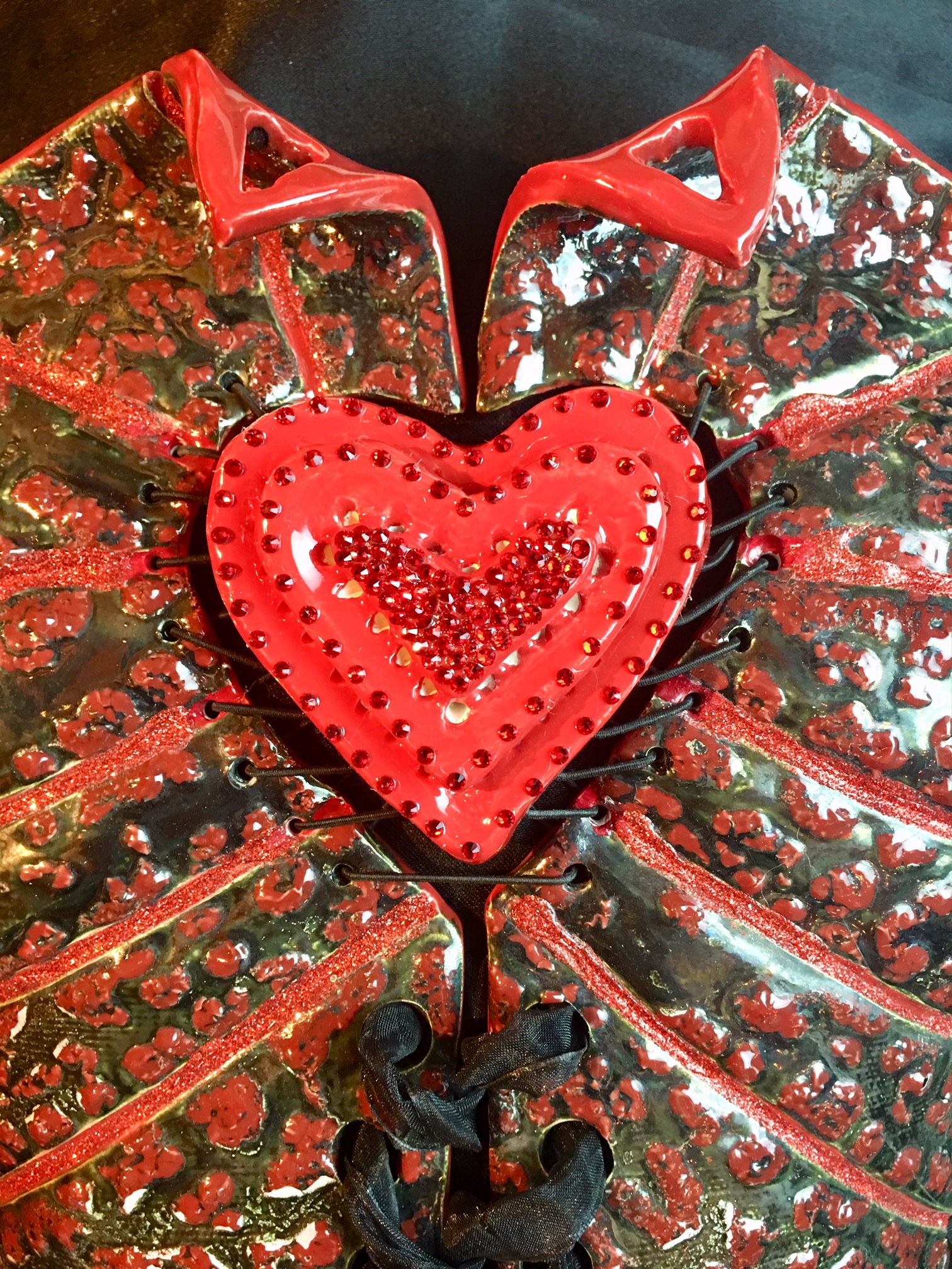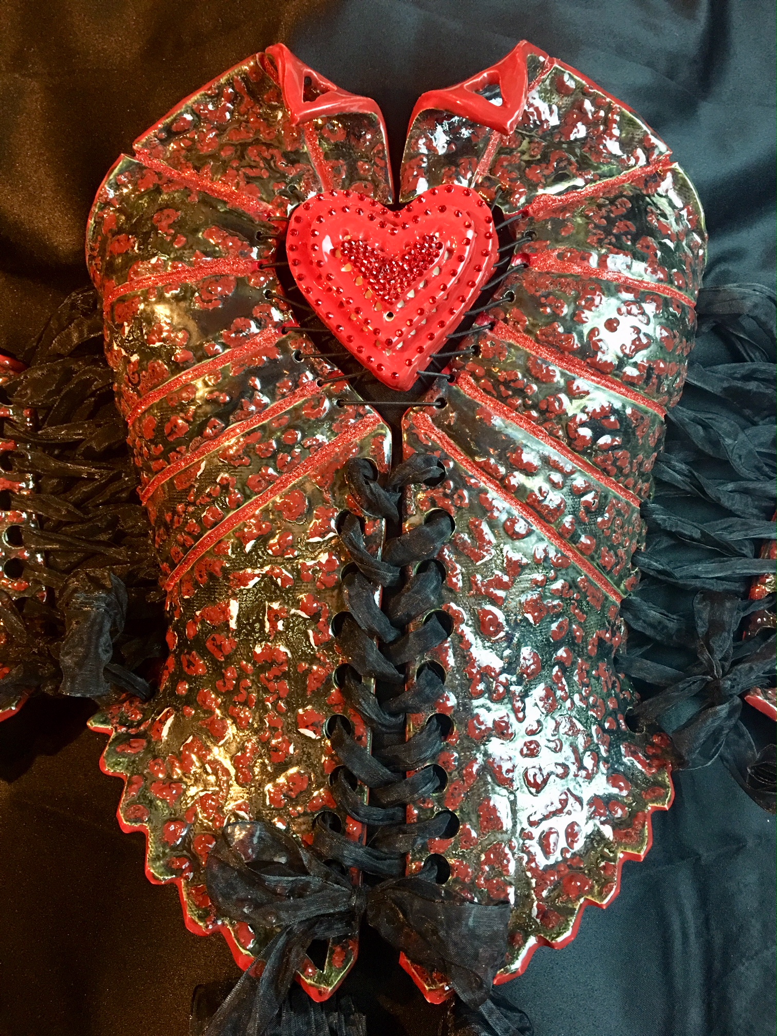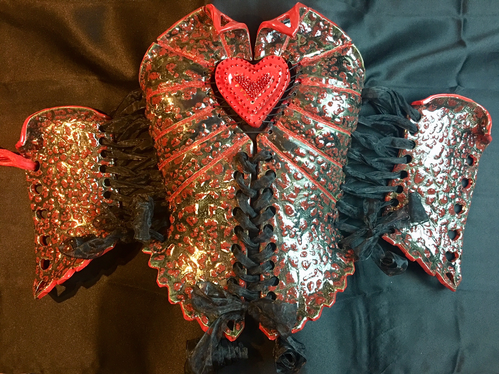 Red Queen wearable ceramic corset by Nicole Moan