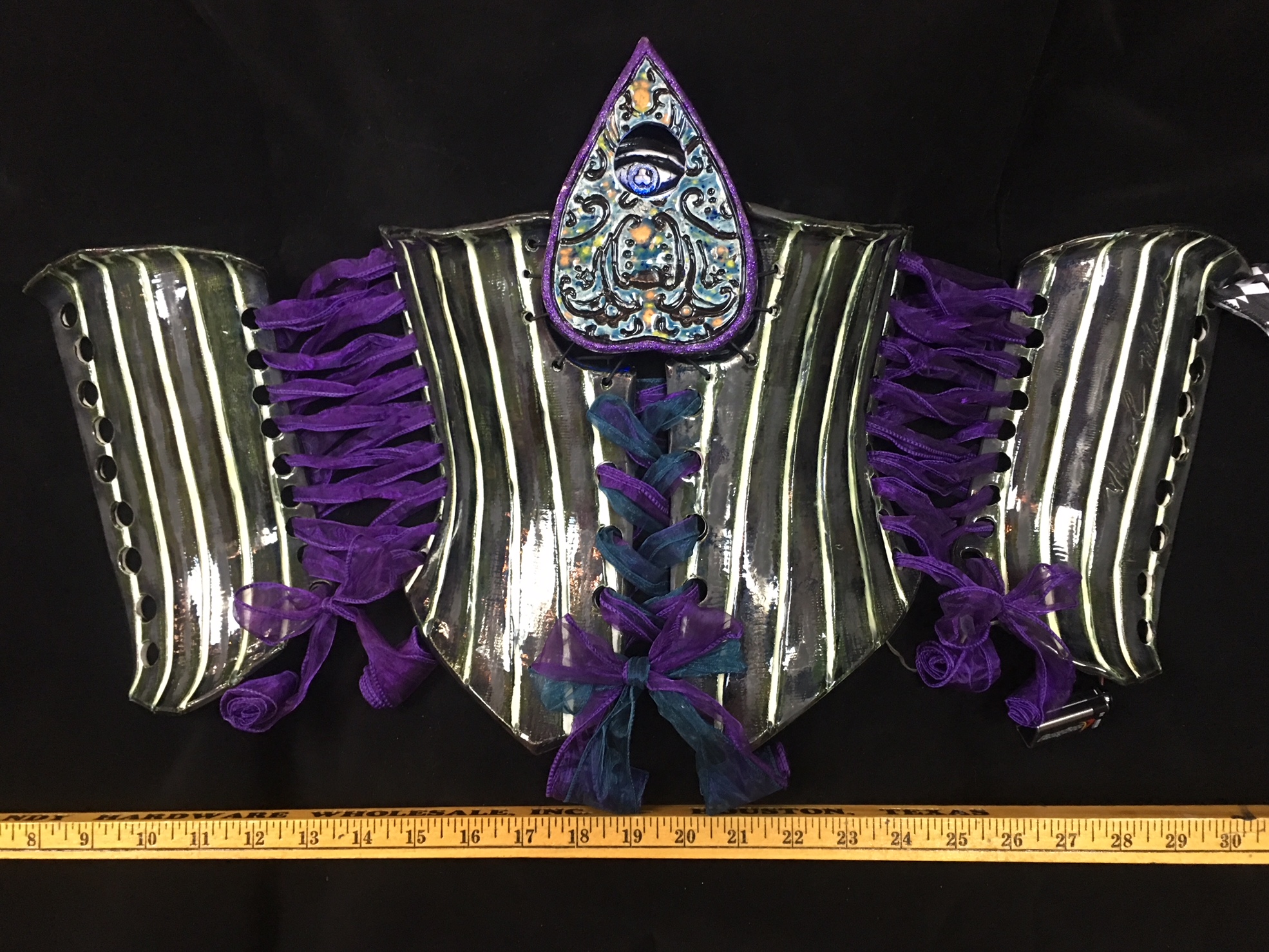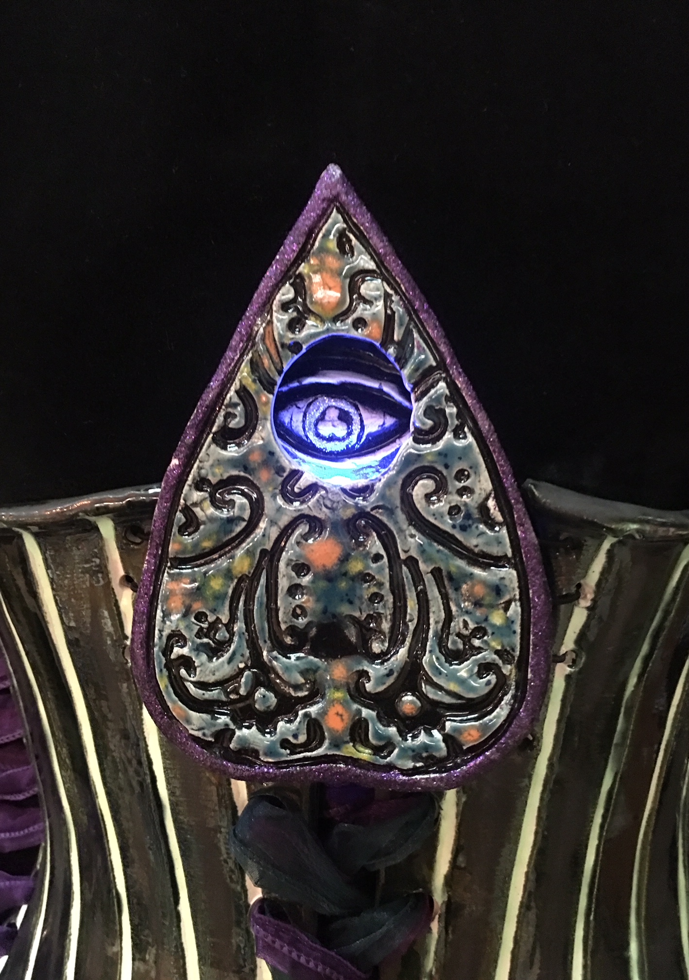 Nicole Moan Ceramic Corsets are all hand sculpted clay pieces, glazed with traditional pottery glazes. They can be worn or displayed as art.