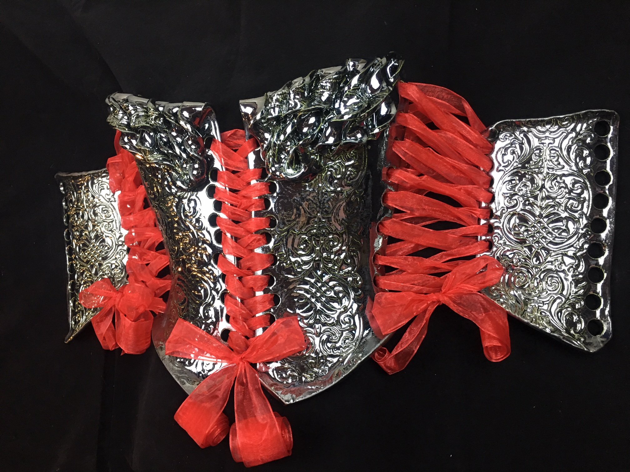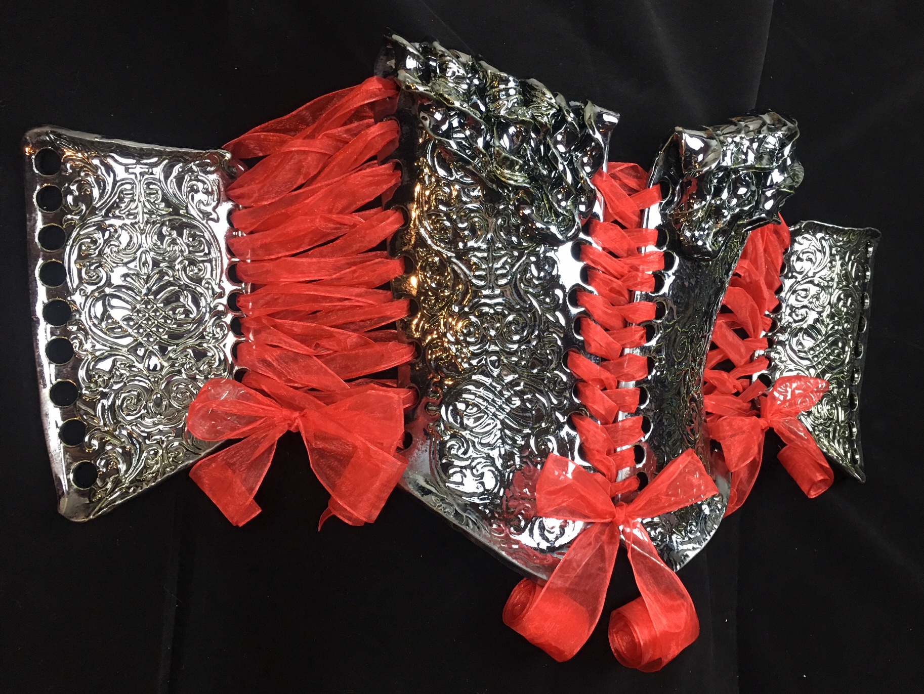 Nicole Moan Ceramic Corsets are all hand sculpted clay pieces, glazed with traditional pottery glazes. They can be worn or displayed as art.