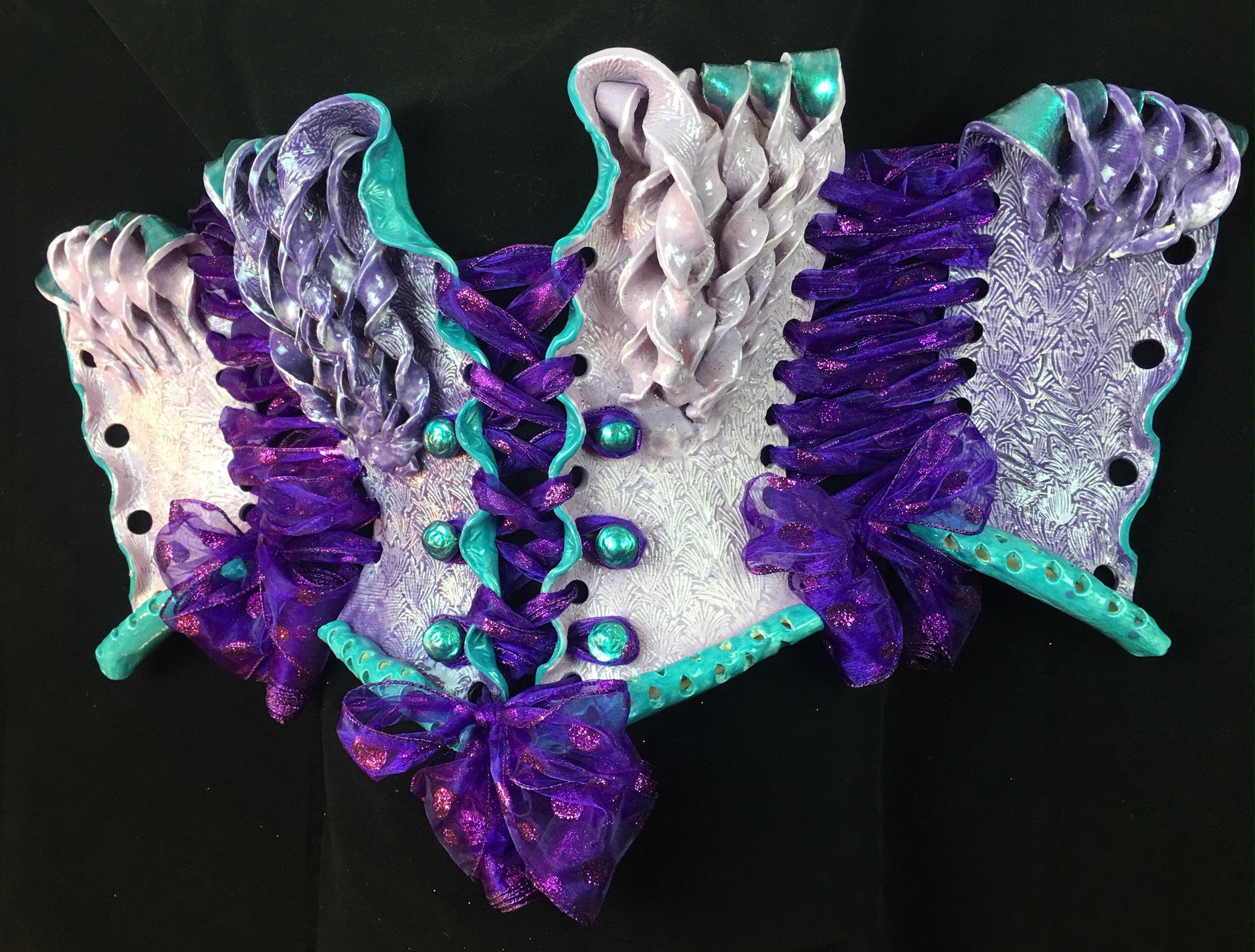 Purple Spindle +plus size short waist wearable ceramic corset by Nicole Moan