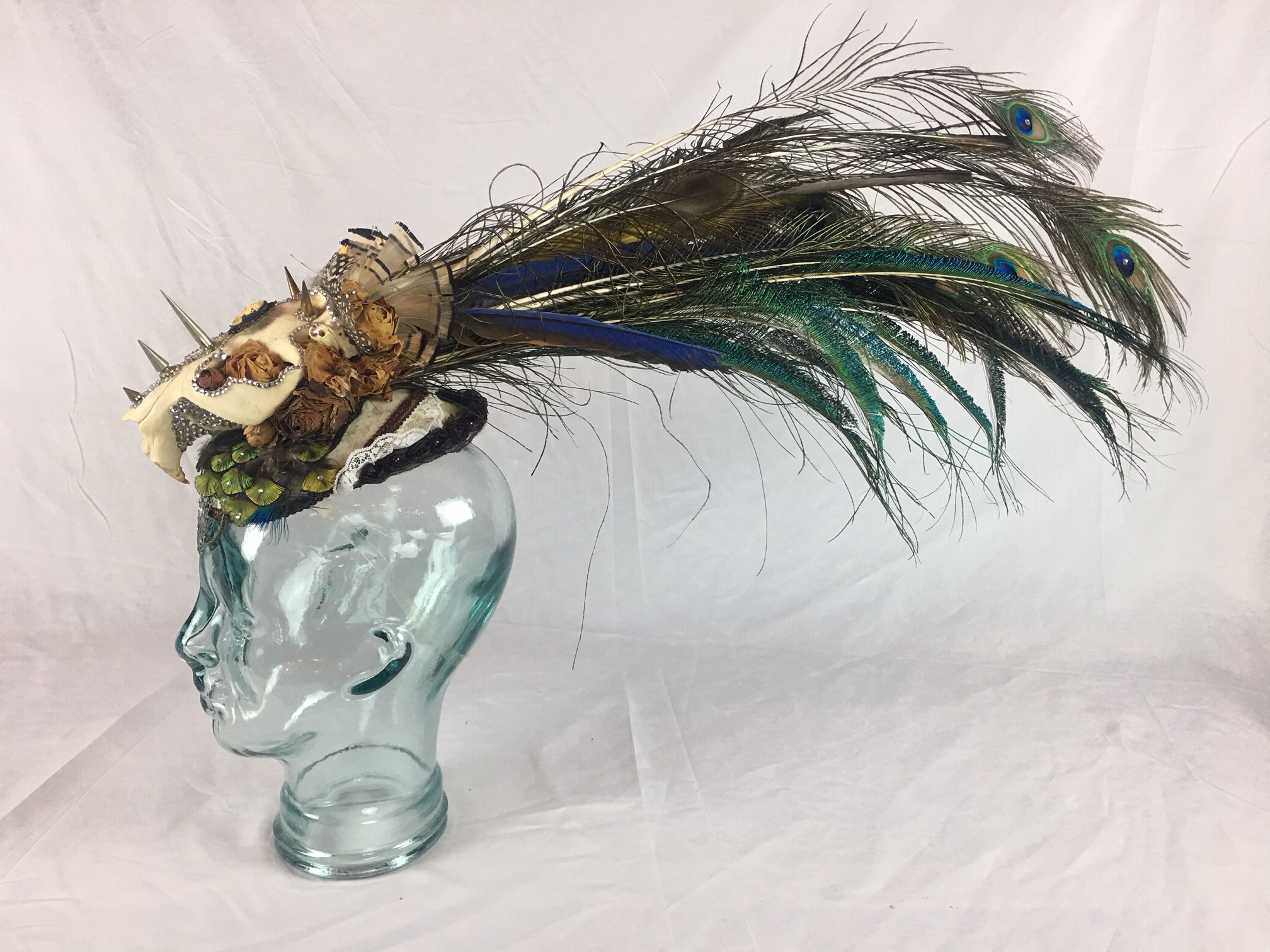 Each Nicole Moan headpiece is handcrafted and one of a kind, made from found or bought items using high quality glues that withstand heat and travel well. Most are created with adjustable straps or headbands.