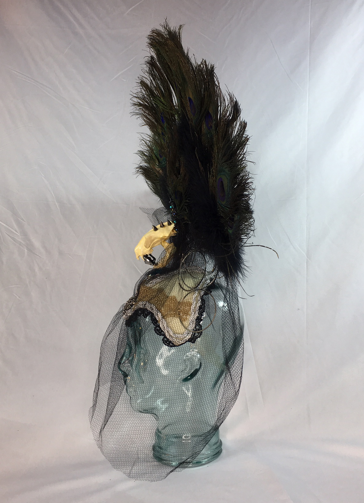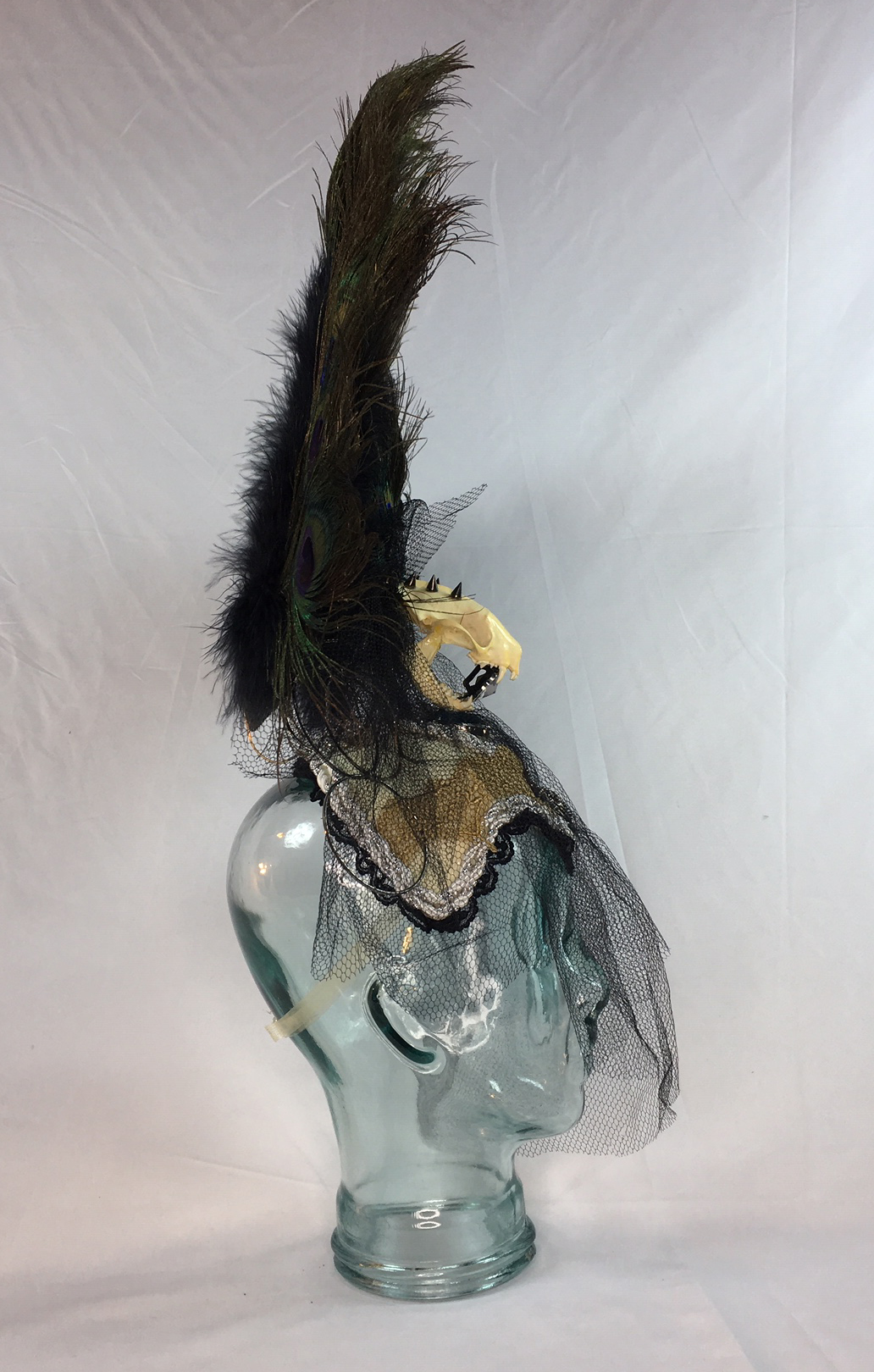 Each Nicole Moan headpiece is handcrafted and one of a kind, made from found or bought items using high quality thread and glues that withstand heat and travel well. Most are created with adjustable straps or headbands.