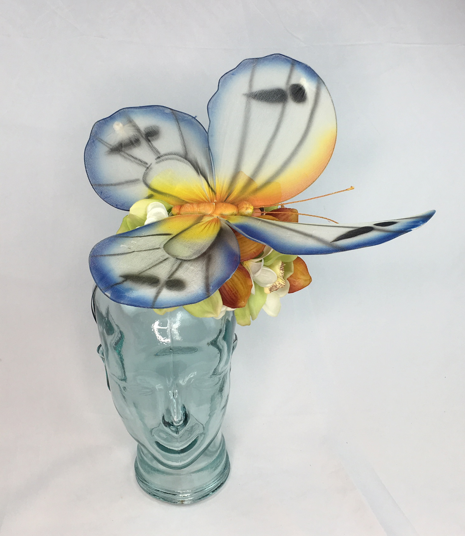 Each Nicole Moan headpiece is handcrafted and one of a kind, made from found or bought items using high quality thread and glues that withstand heat and travel well. Most are created with adjustable straps or headbands.