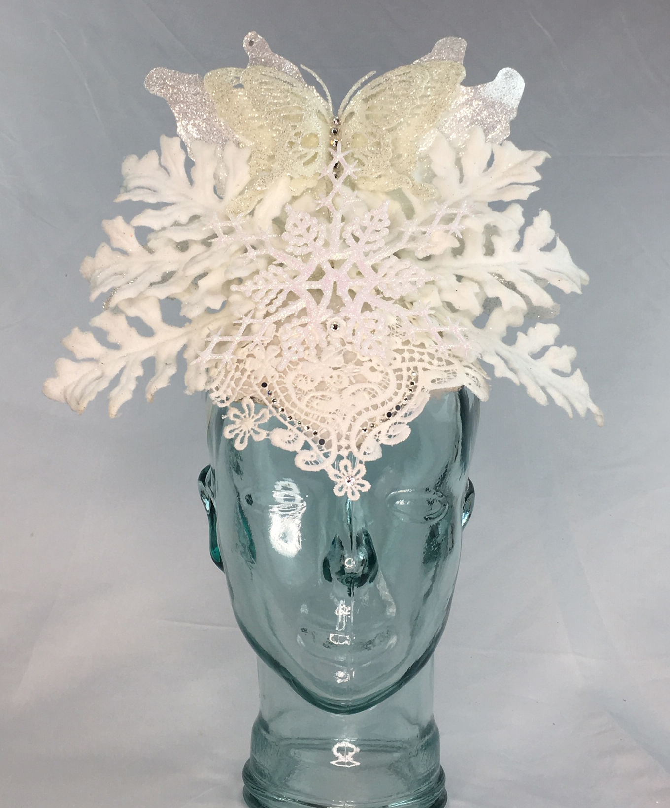Each Nicole Moan headpiece is handcrafted and one of a kind, made from found or bought items using high quality thread and glues that withstand heat and travel well. Most are created with adjustable straps or headbands.