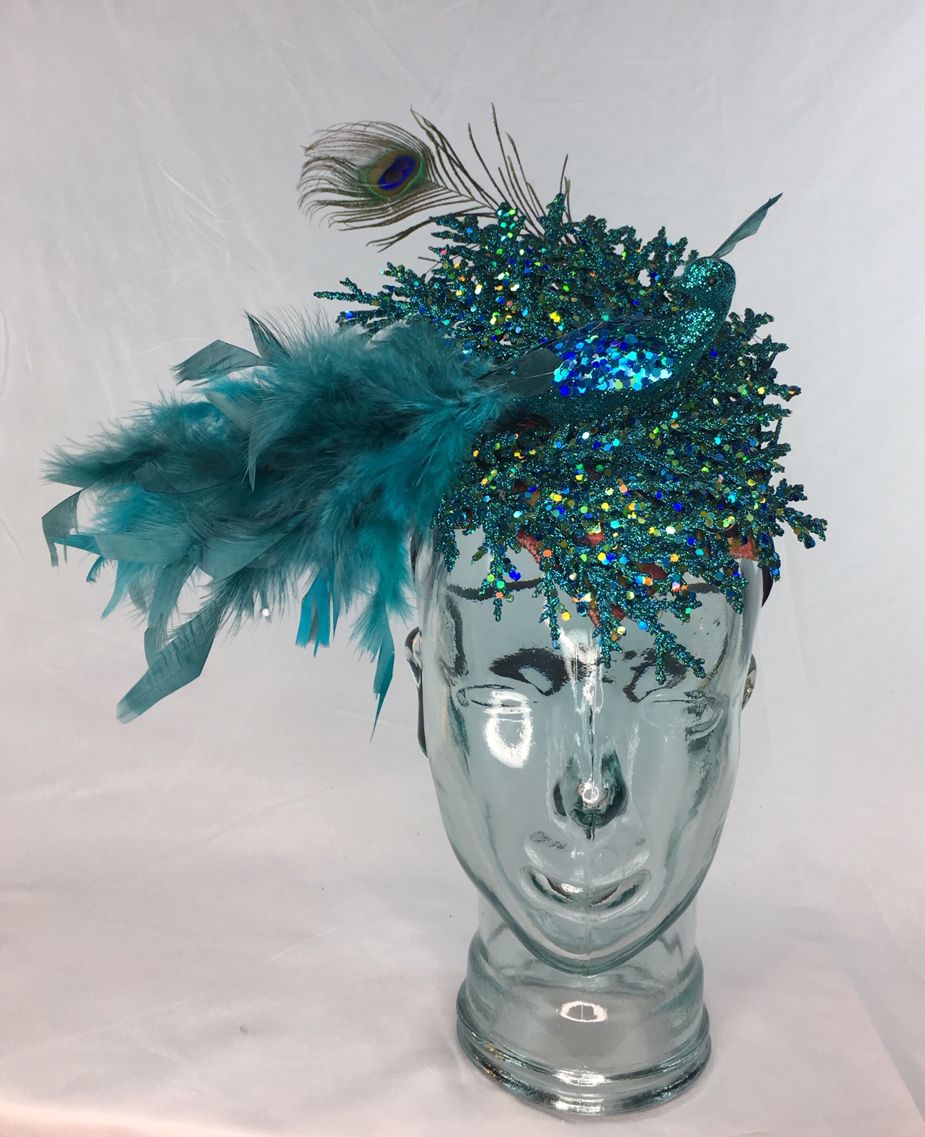 Each Nicole Moan headpiece is handcrafted and one of a kind, made from found or bought items using high quality thread and glues that withstand heat and travel well. Most are created with adjustable straps or headbands.