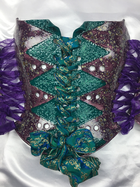 Nicole Moan Ceramic Corsets are all hand sculpted clay pieces, glazed with traditional pottery glazes. They are made to be worn or displayed as art. She creates custom pieces as well.