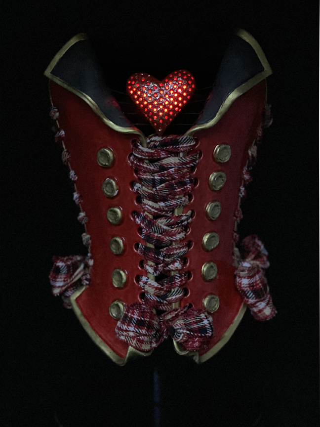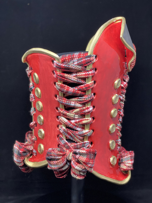 Nicole Moan Ceramic Corsets are all hand sculpted clay pieces, glazed with traditional pottery glazes. They are made to be worn or displayed as art.