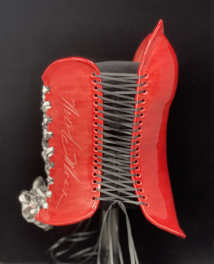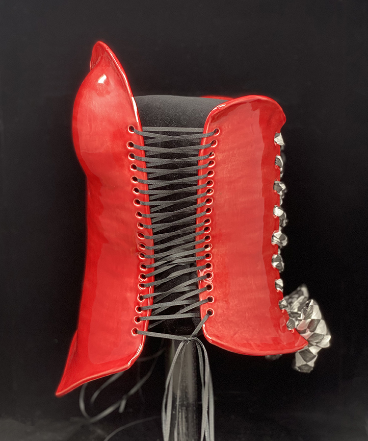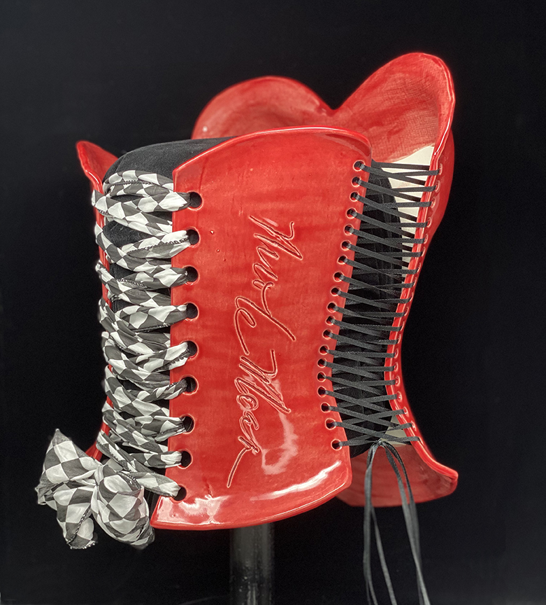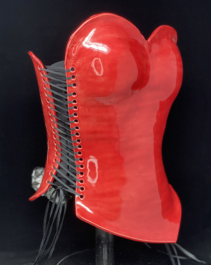 Nicole Moan Ceramic Corsets are all hand sculpted clay pieces, glazed with traditional pottery glazes. They are made to be worn or displayed as art. She creates custom pieces as well.