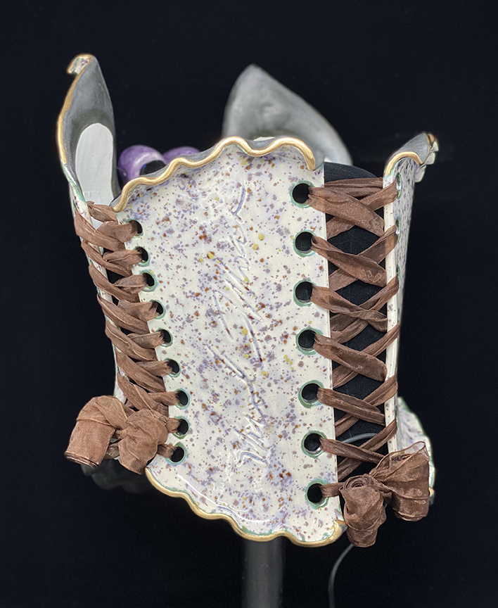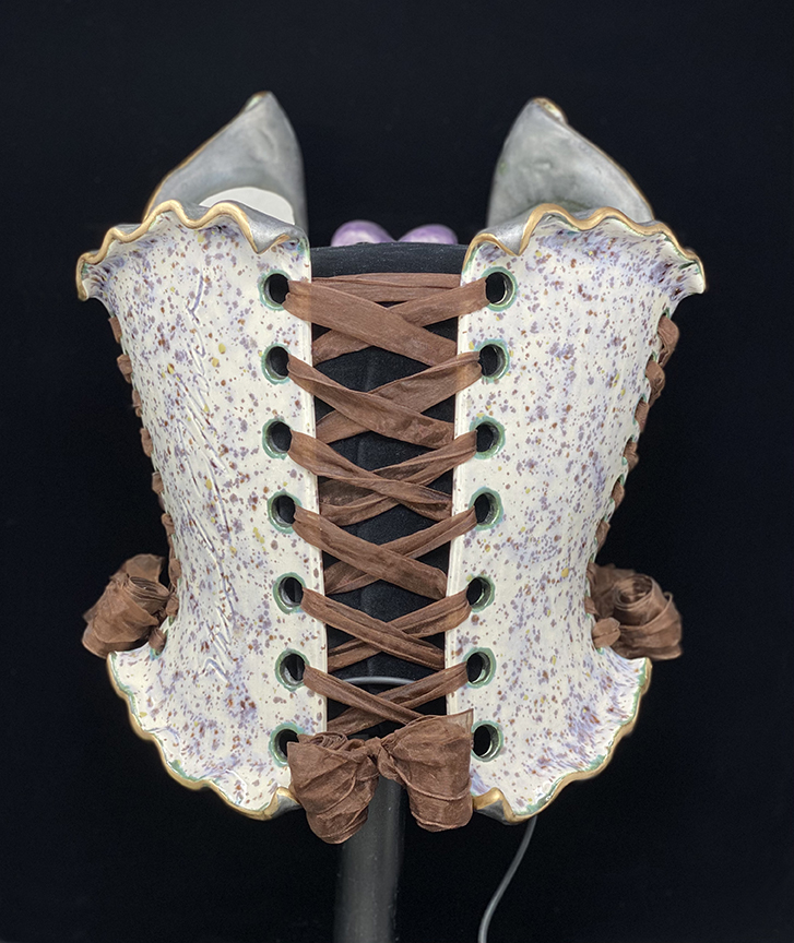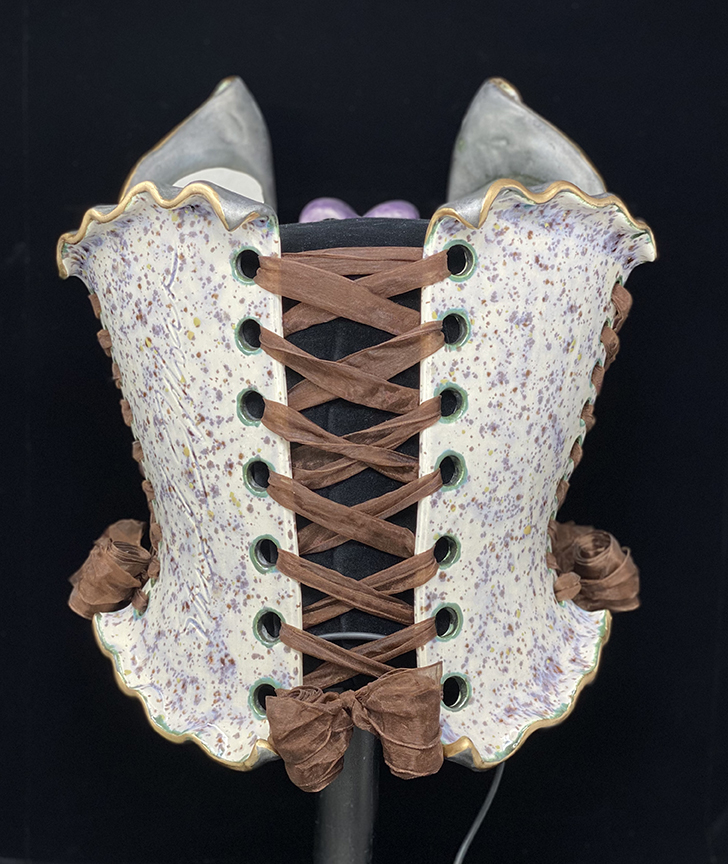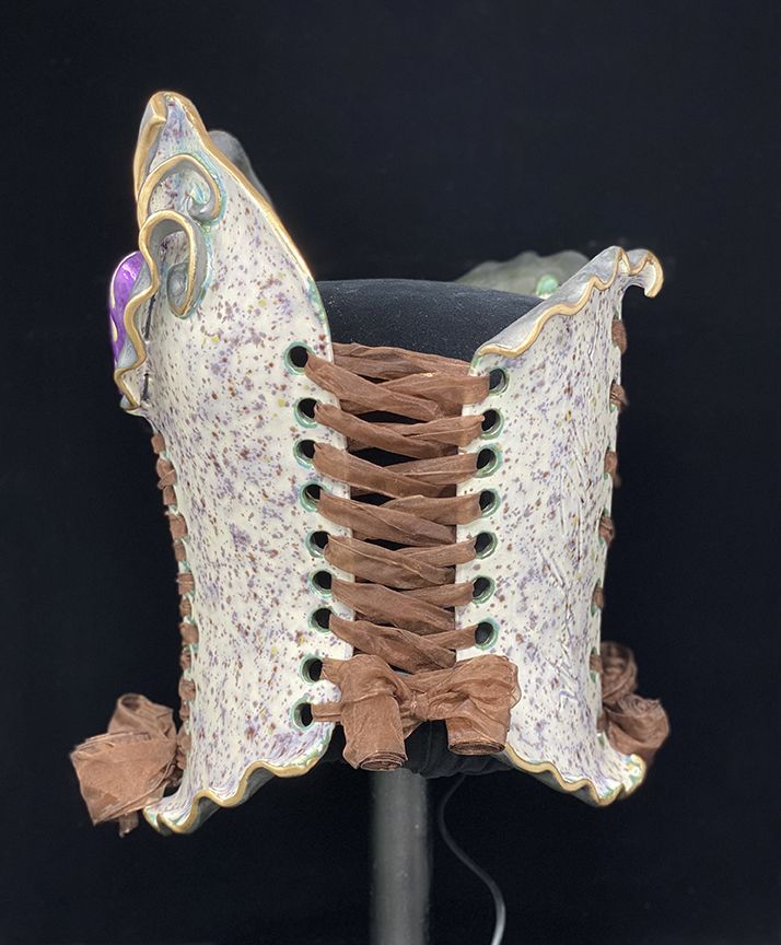 Nicole Moan Ceramic Corsets are all hand sculpted clay pieces, glazed with traditional pottery glazes. They are made to be worn or displayed as art. She creates custom pieces as well.