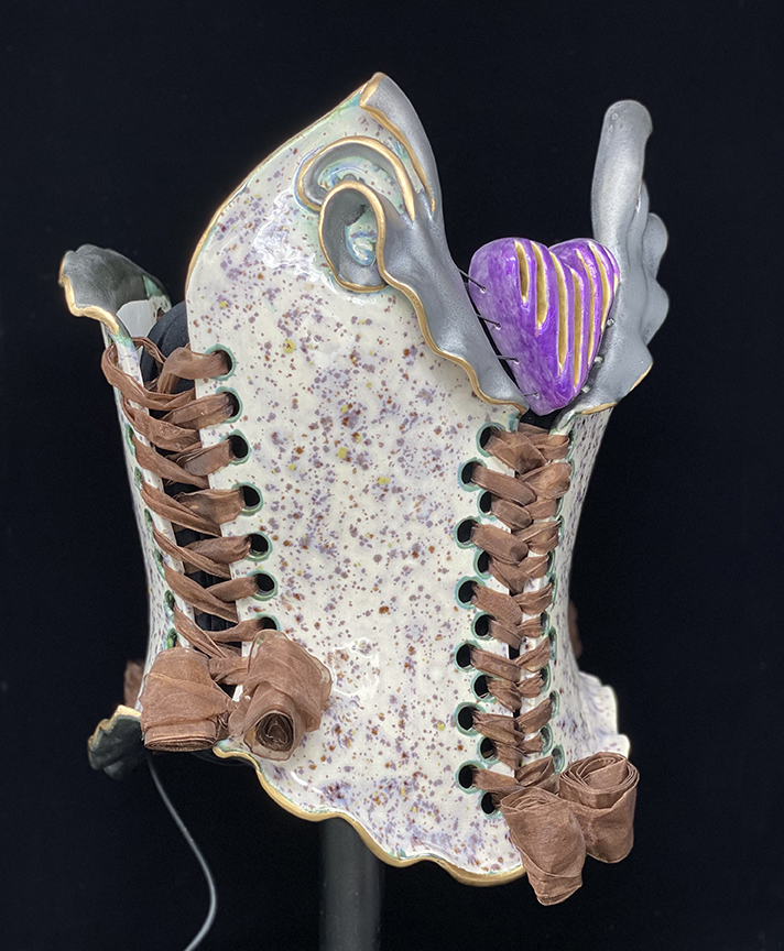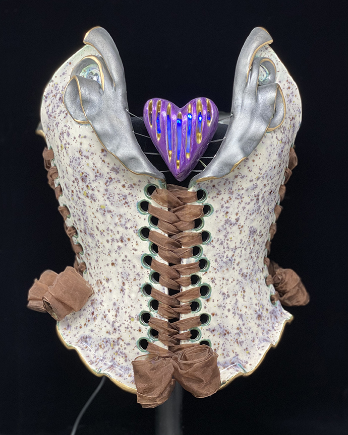 Brindle Love Light-up heart wearable ceramic corset by: Nicole Moan