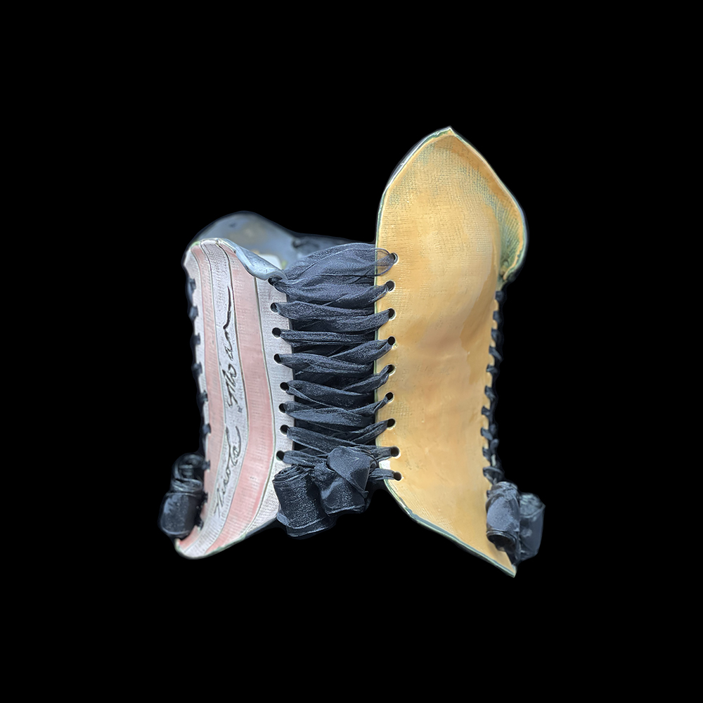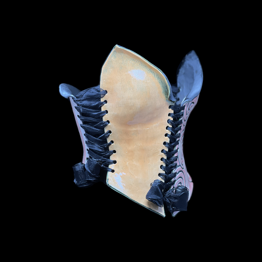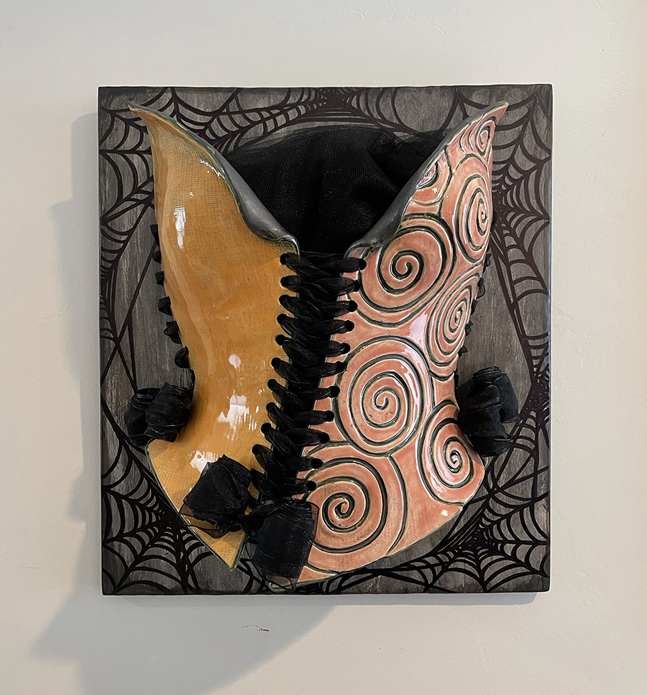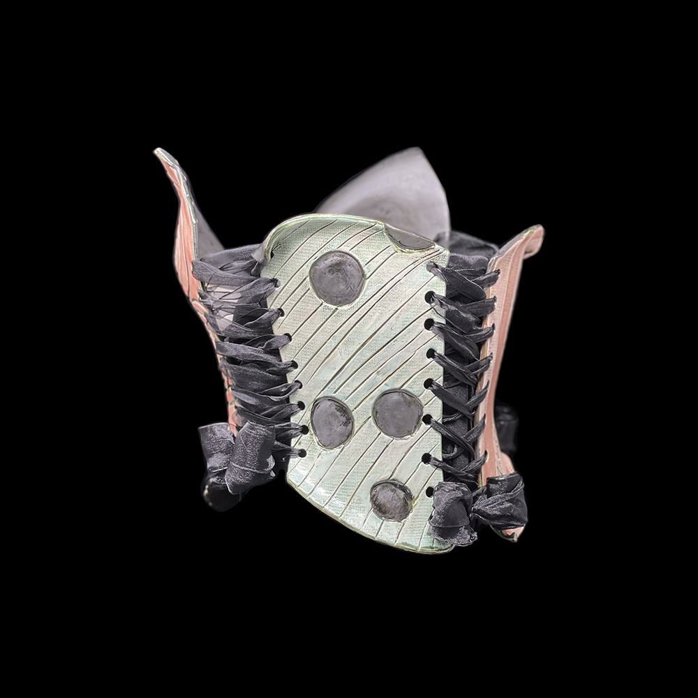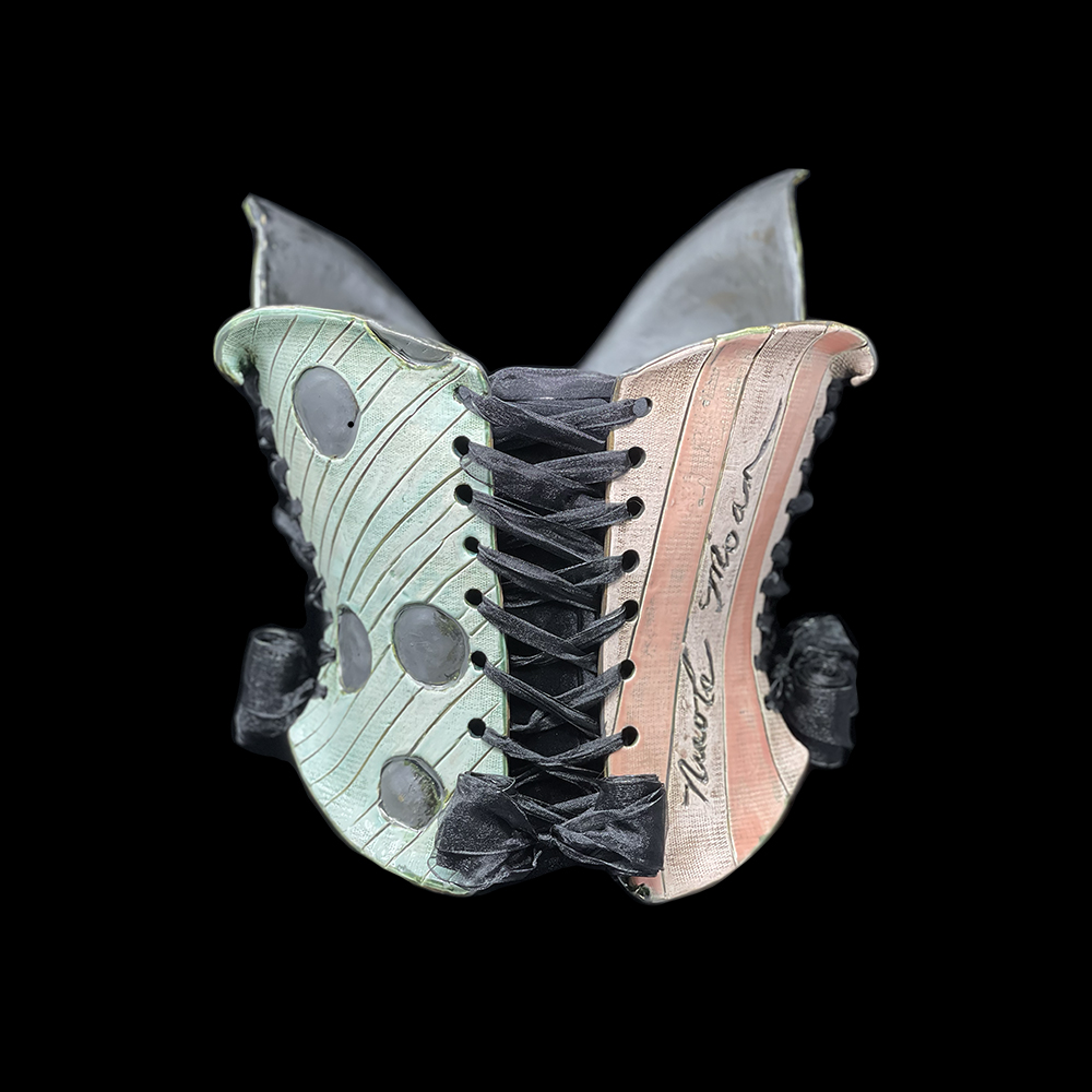 Nicole Moan Ceramic Corsets are all hand sculpted clay pieces, glazed with traditional pottery glazes. They are made to be worn or displayed as art.