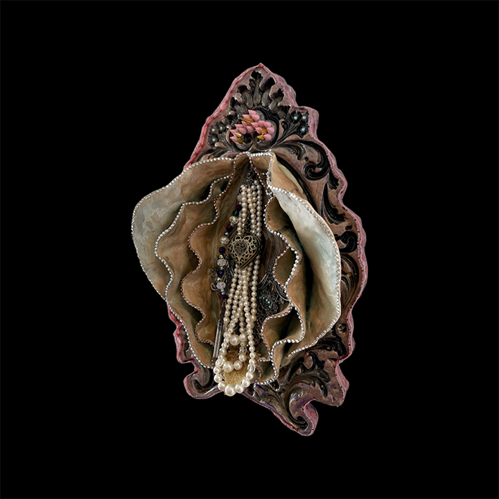 Insurance is part of my "My Body My Rights " series. Hand sculptured clay, acrylic and resin. Size is 14" X 11" X 8" wall hung with felt backing and hanging wire.