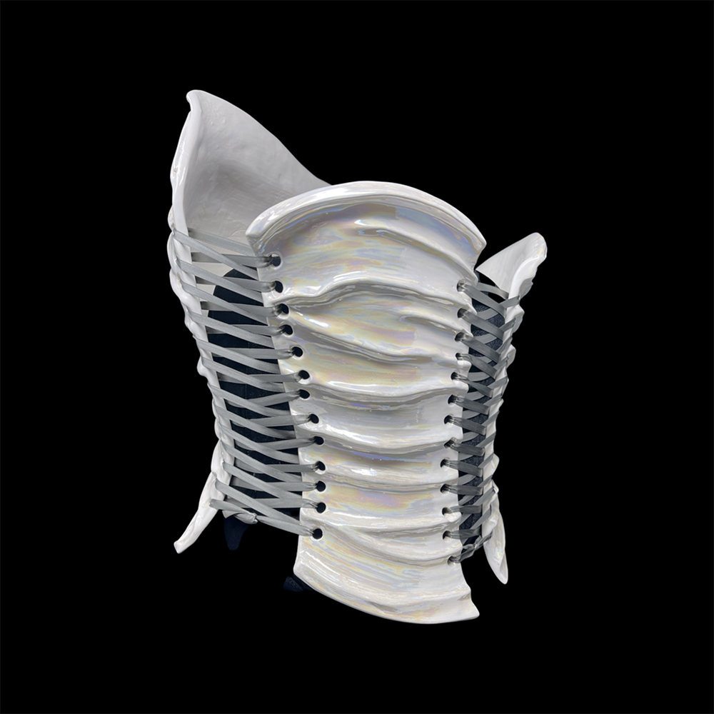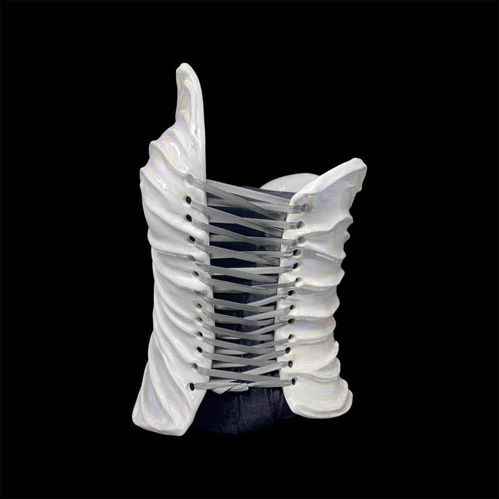 Nicole Moan Ceramic Corsets are all hand sculpted clay pieces, glazed with traditional pottery glazes. They are made to be worn or displayed as art.
