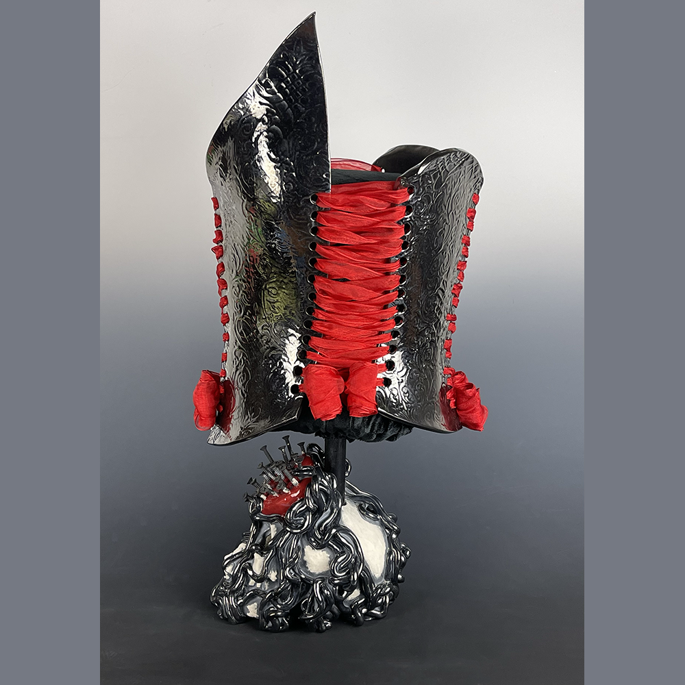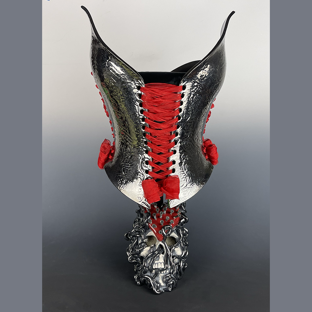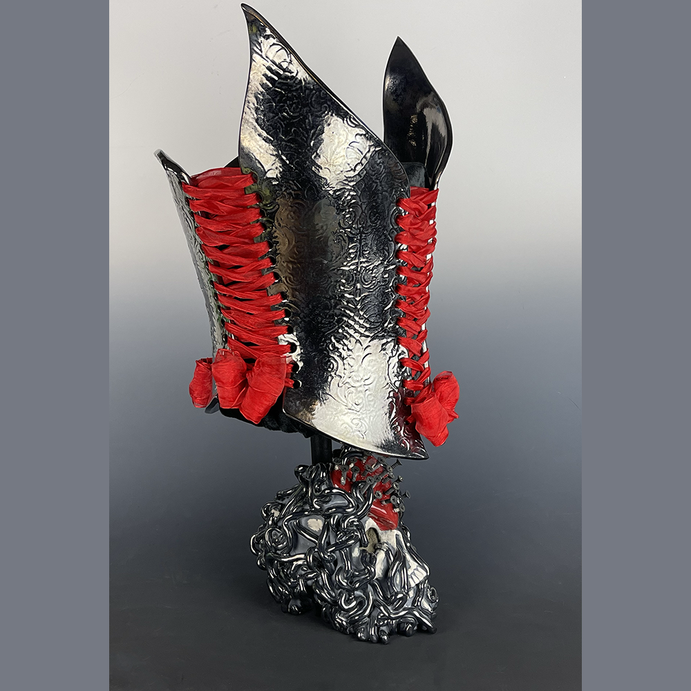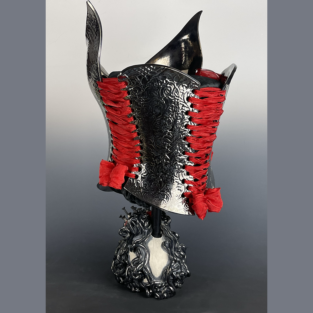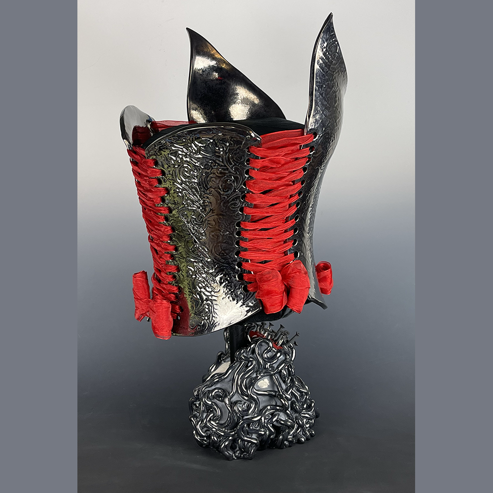 Nicole Moan Ceramic Corsets are all hand sculpted clay pieces, glazed with traditional pottery glazes. They are made to be worn or displayed as art.