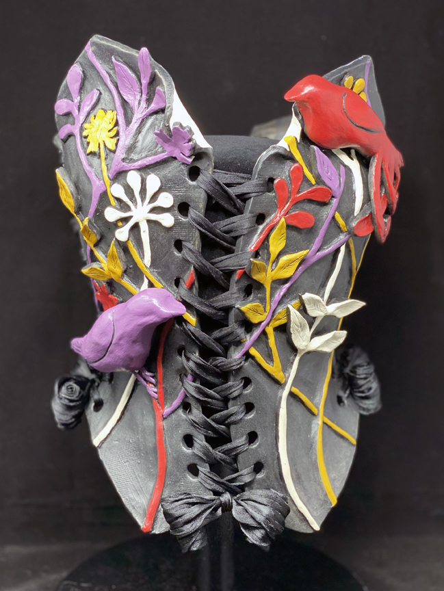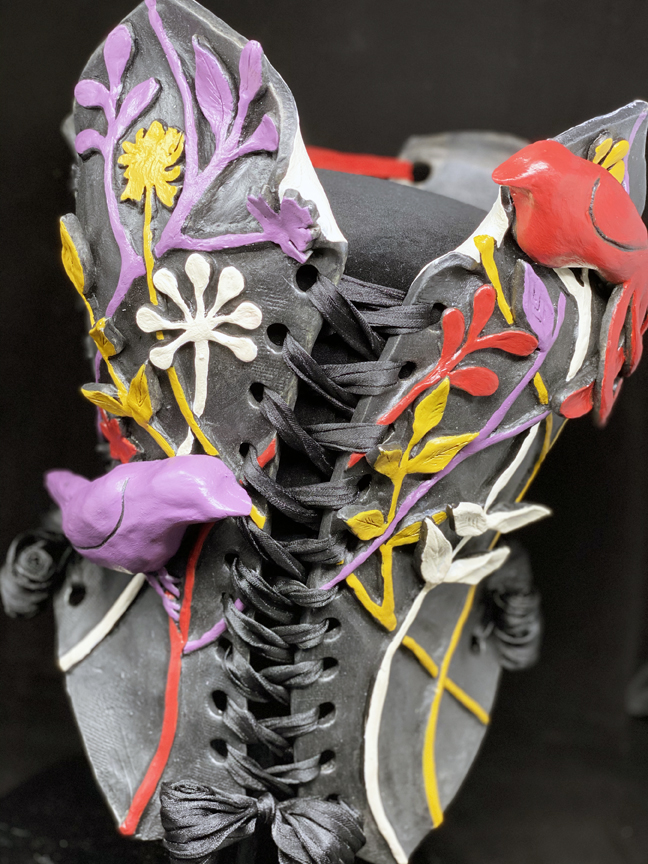 Bird Watching Beauty wearable ceramic corset by: Nicole Moan