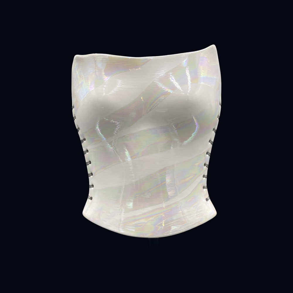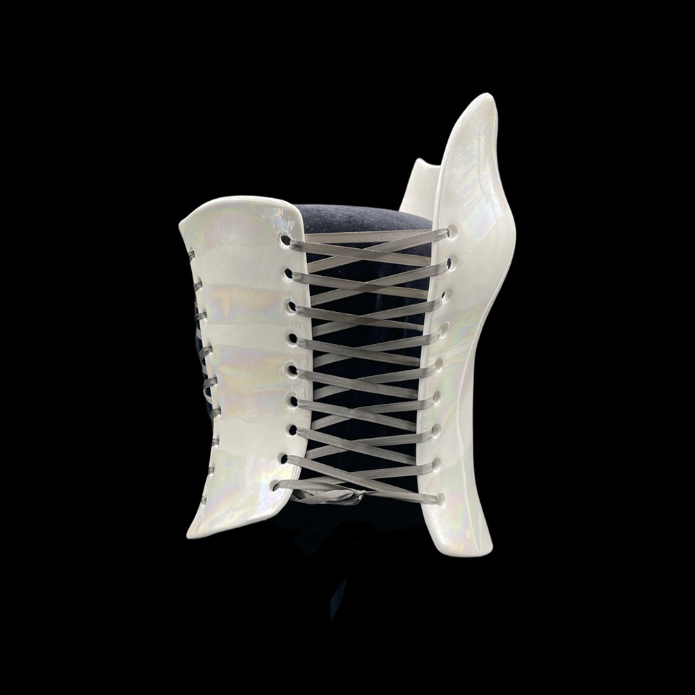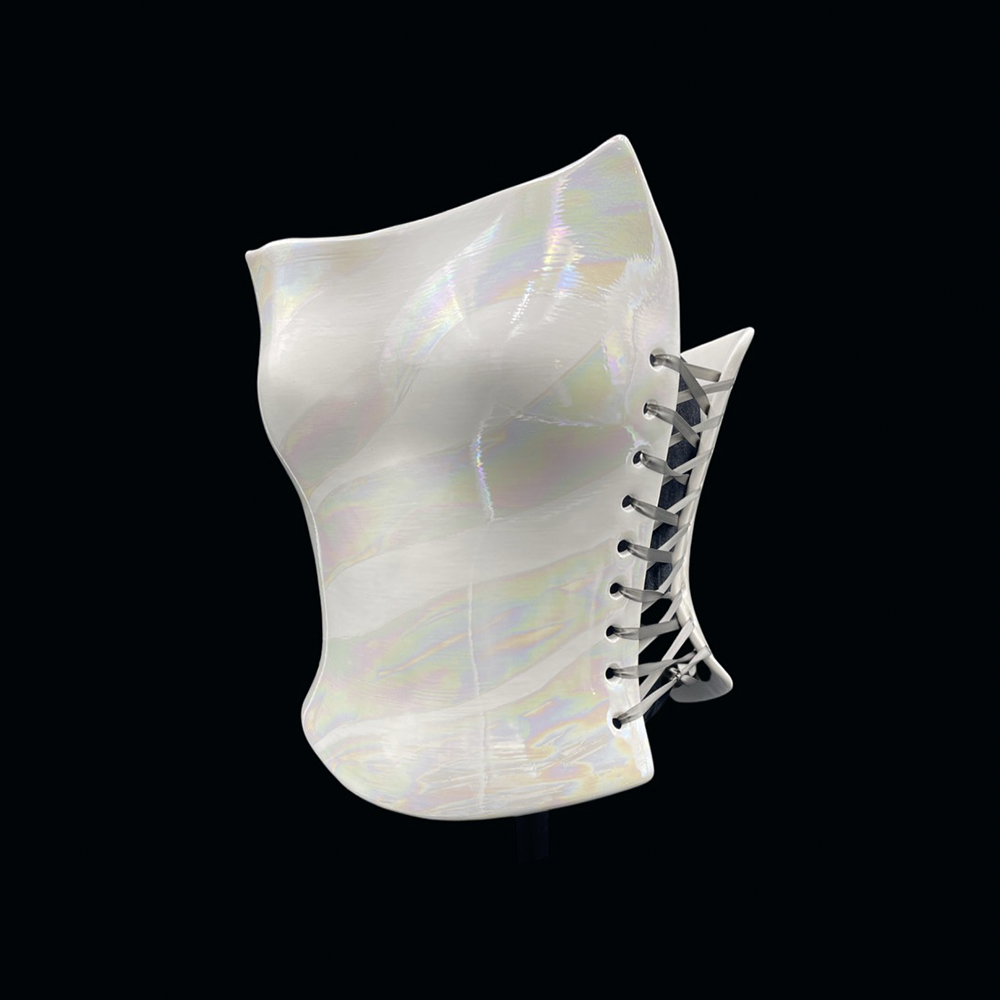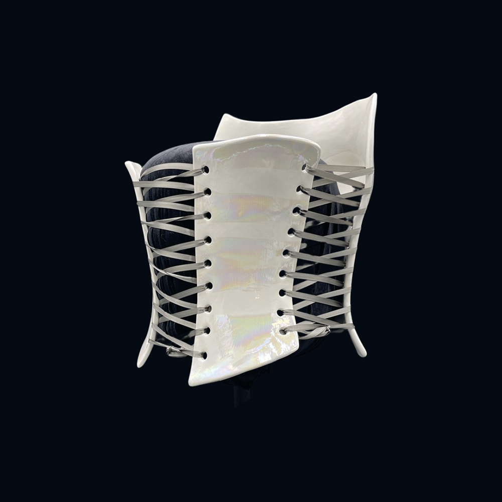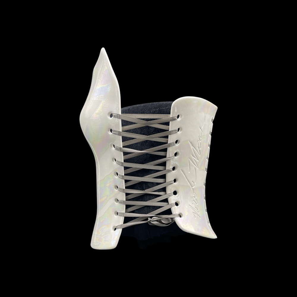 white #2 Venus goddess series wearable ceramic corset by Nicole Moan