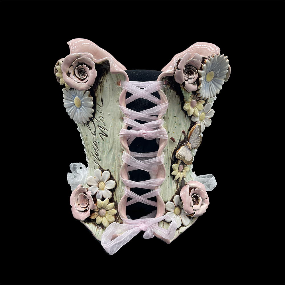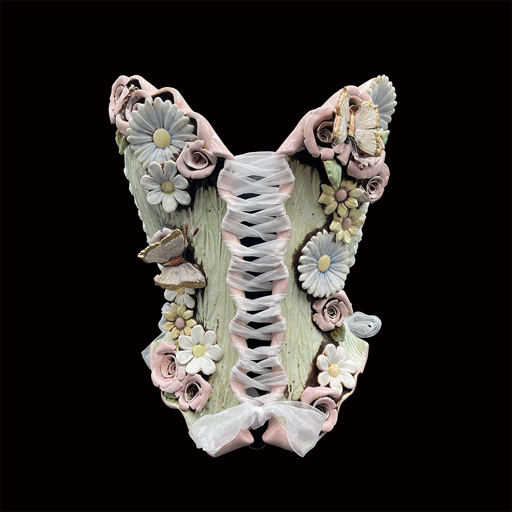 Pastel Garden wearable ceramic corset by: Nicole Moan