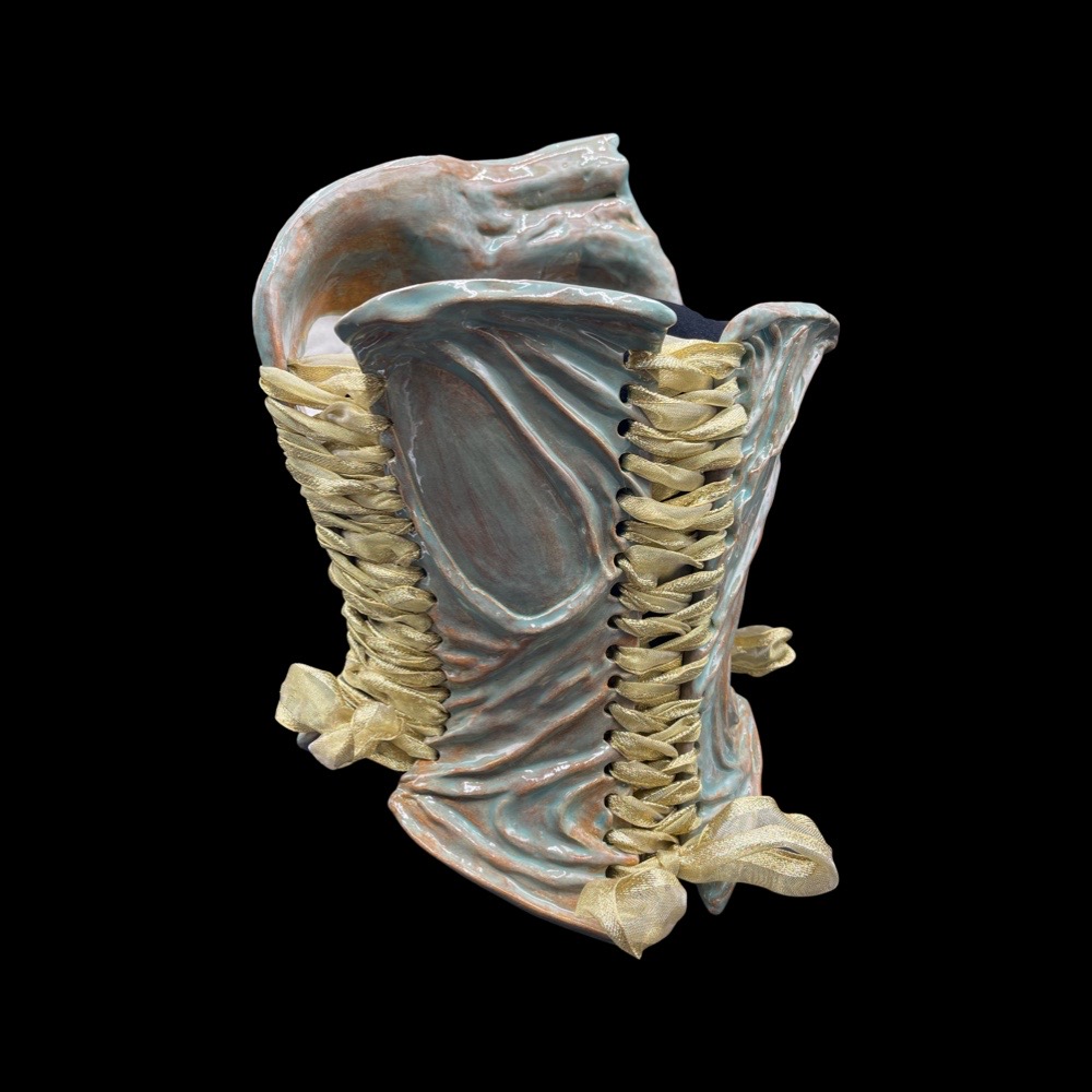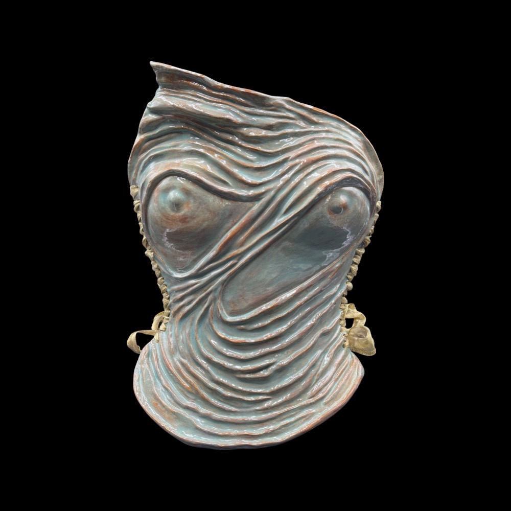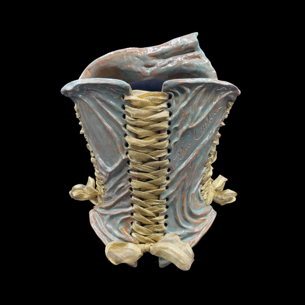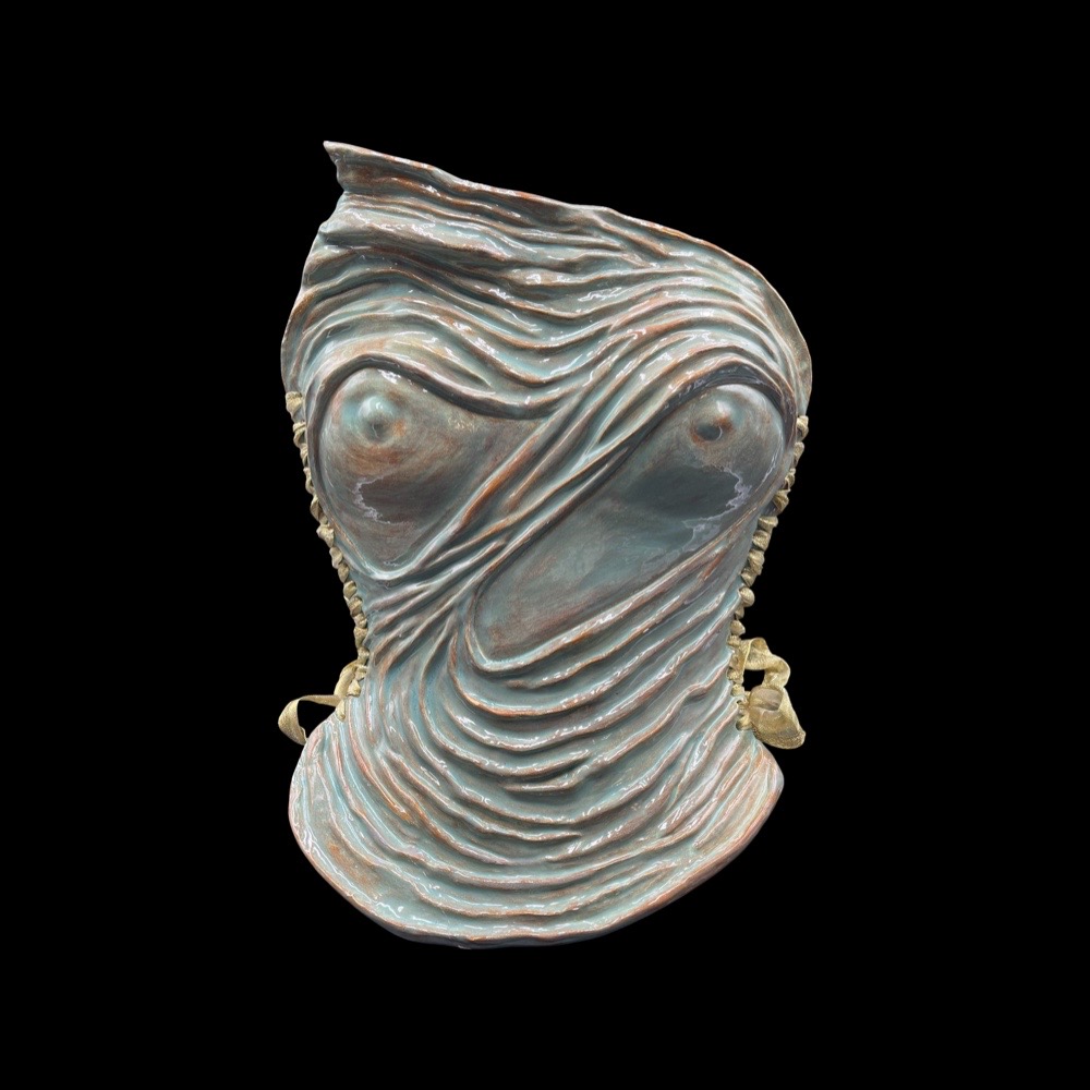 Nicole Moan Ceramic Corsets are all hand sculpted clay pieces, glazed with traditional pottery glazes. They are made to be worn or displayed as art. She creates custom pieces as well.