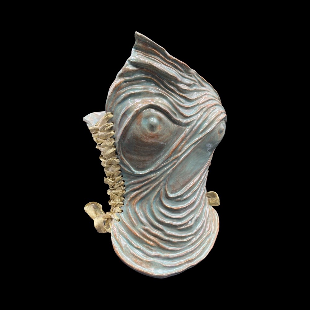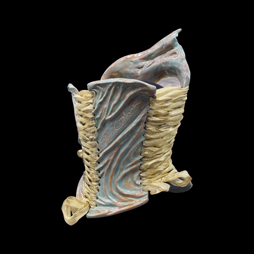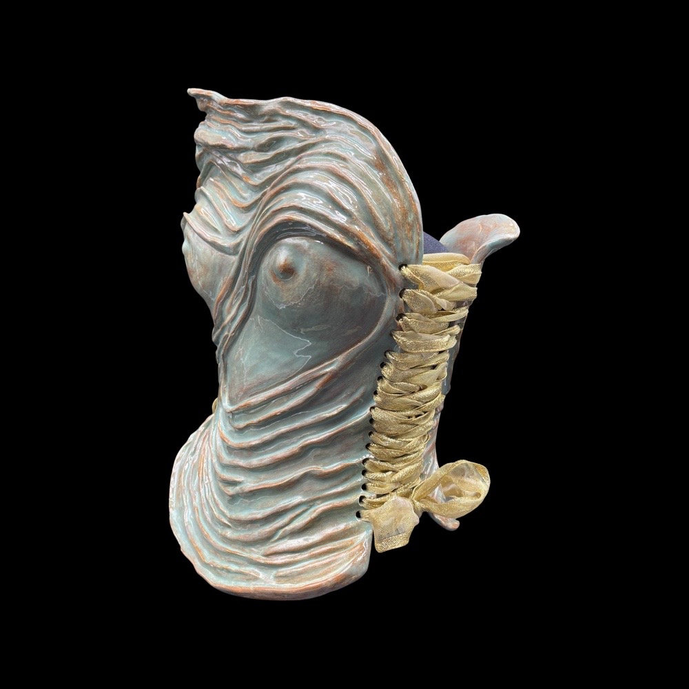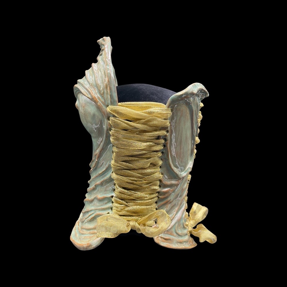 Nicole Moan Ceramic Corsets are all hand sculpted clay pieces, glazed with traditional pottery glazes. They are made to be worn or displayed as art. She creates custom pieces as well.