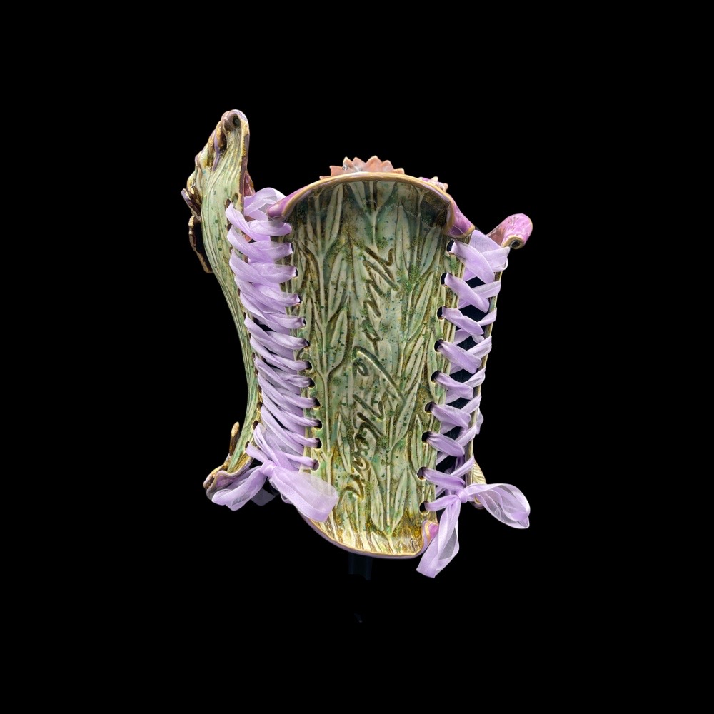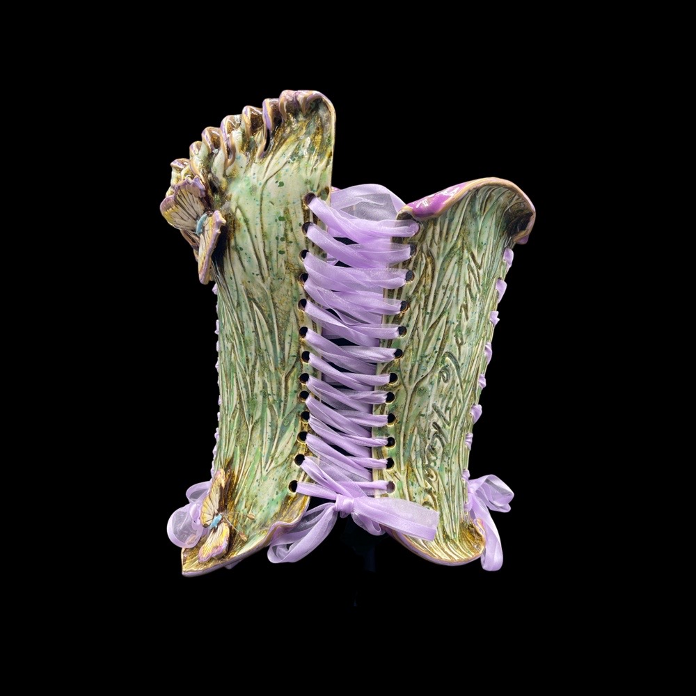 Nicole Moan Ceramic Corsets are all hand sculpted clay pieces, glazed with traditional pottery glazes. They are made to be worn or displayed as art. She creates custom pieces as well.