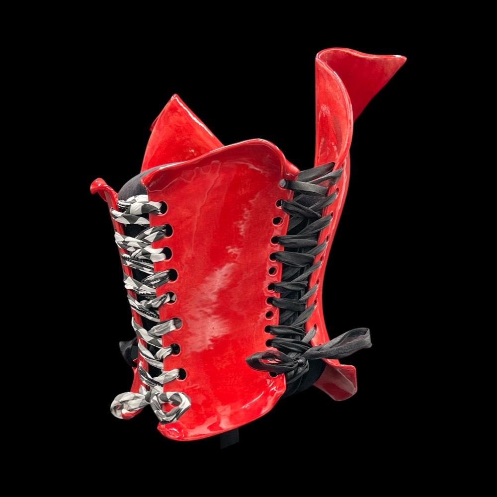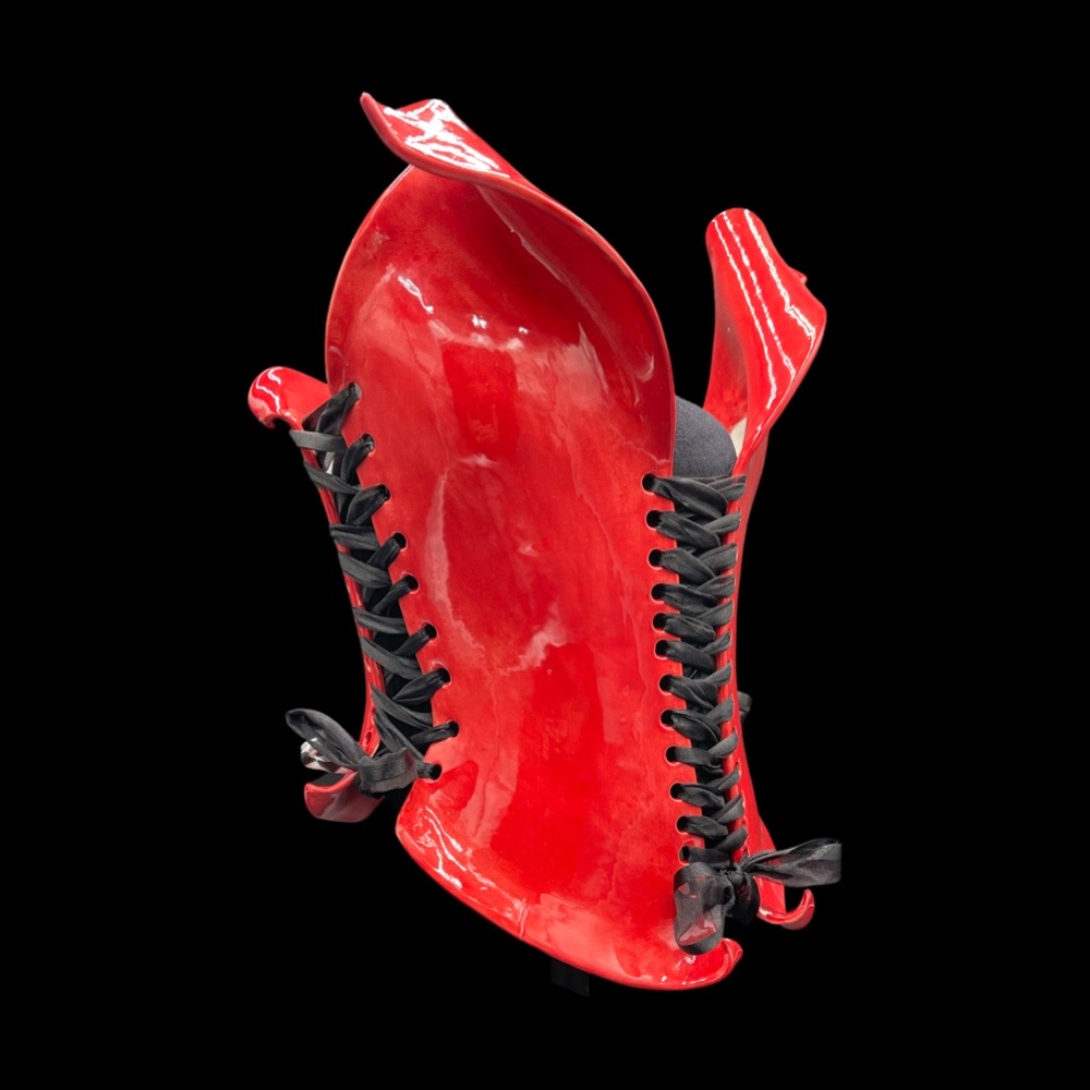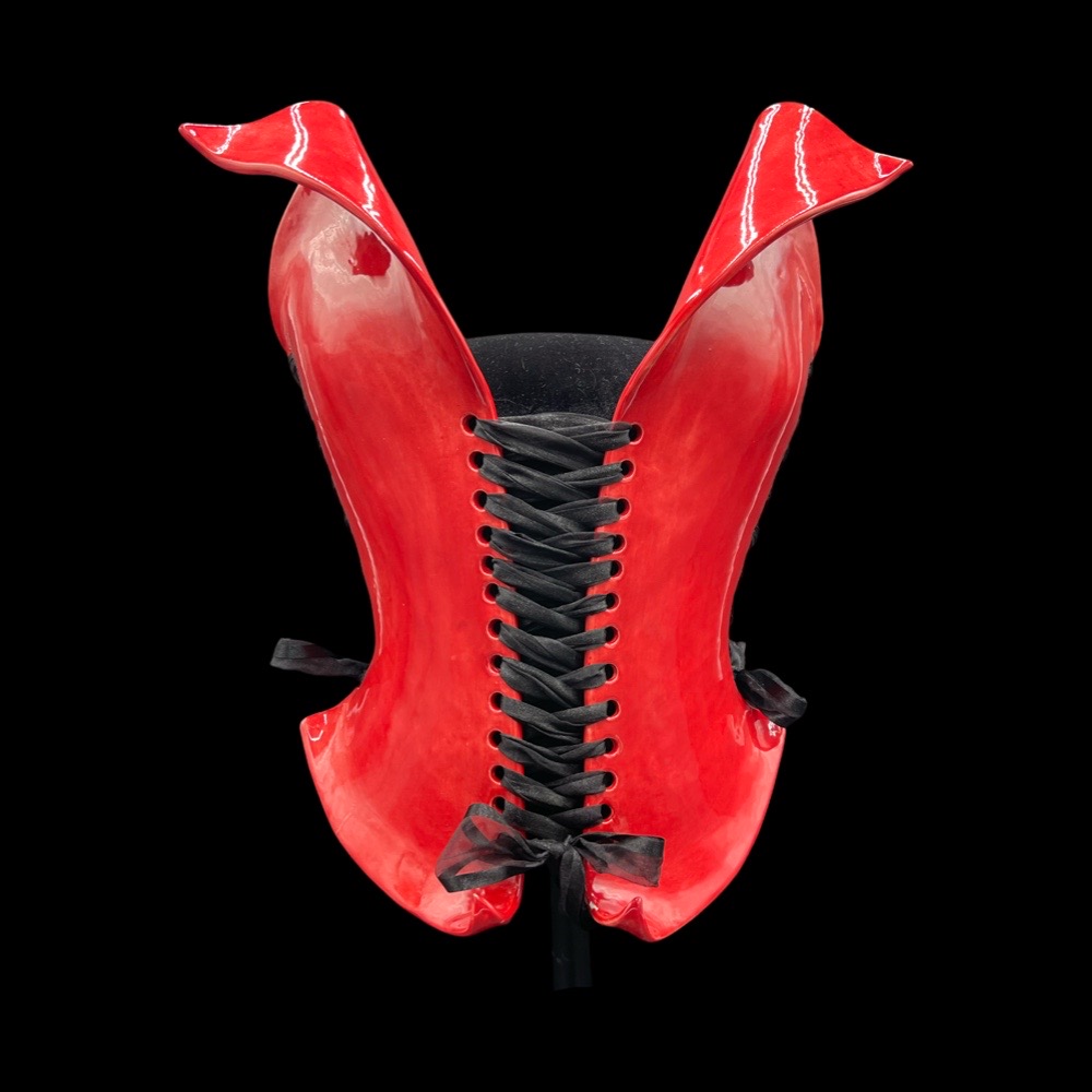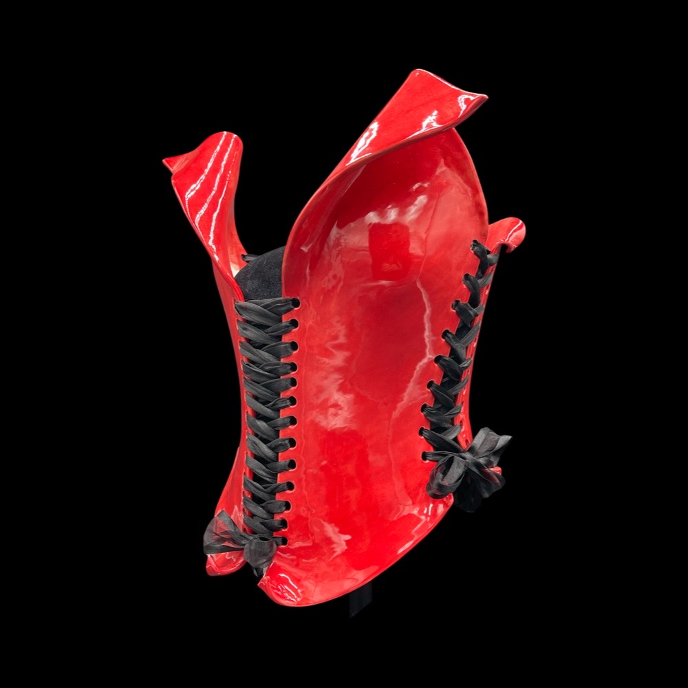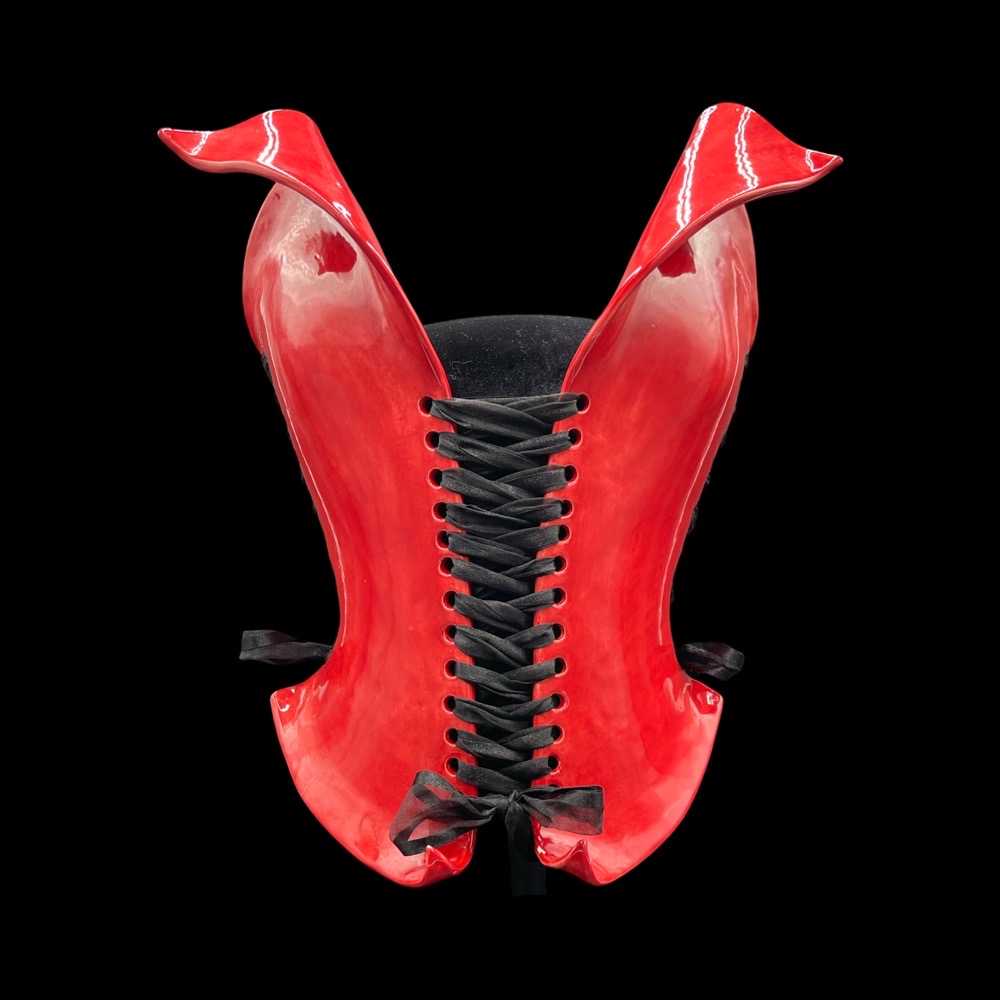 Nicole Moan Ceramic Corsets are all hand sculpted clay pieces, glazed with traditional pottery glazes. They are made to be worn or displayed as art. She creates custom pieces as well.