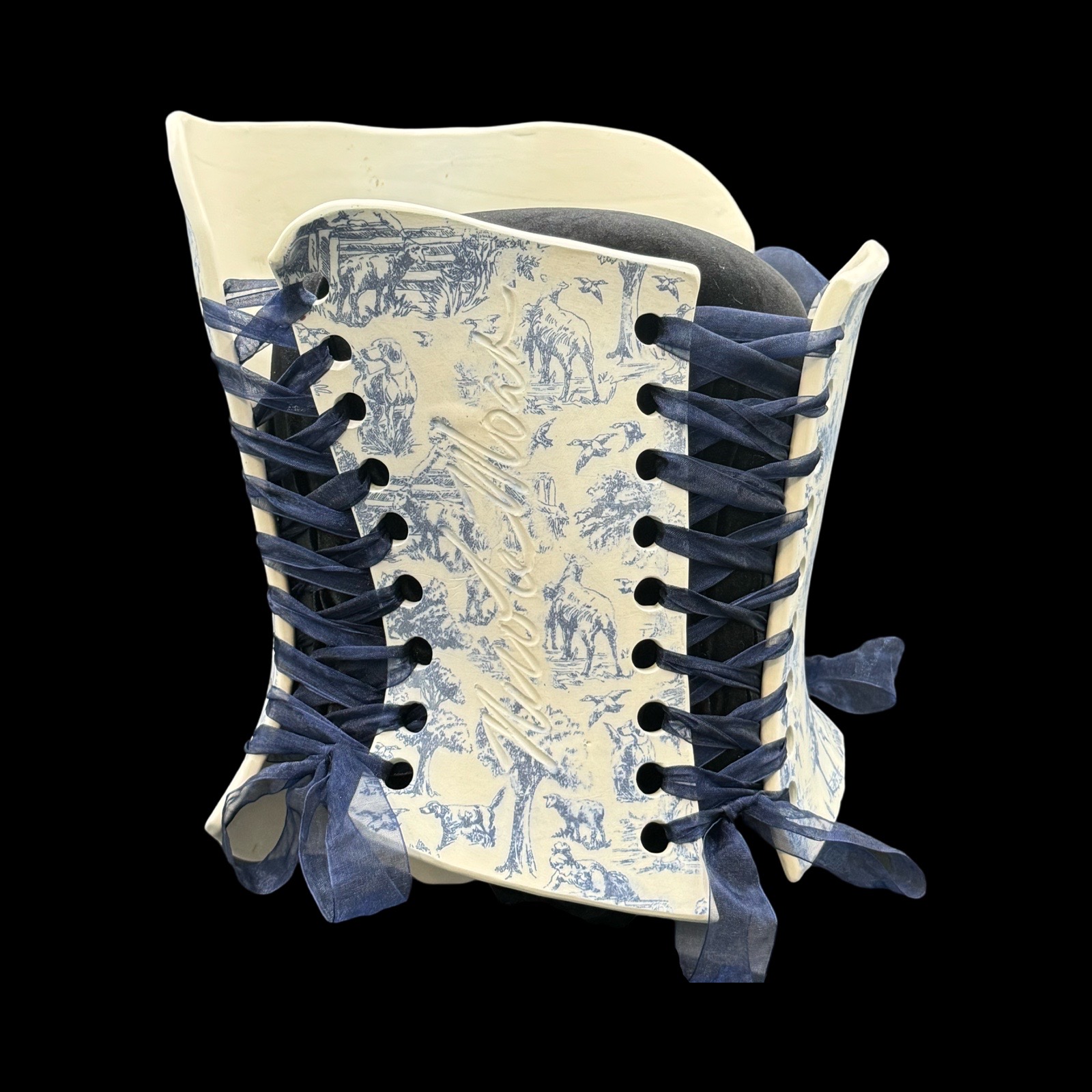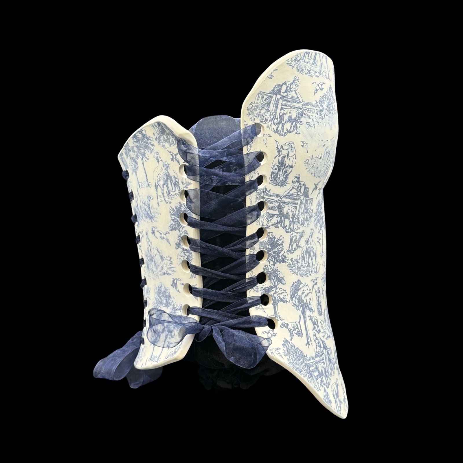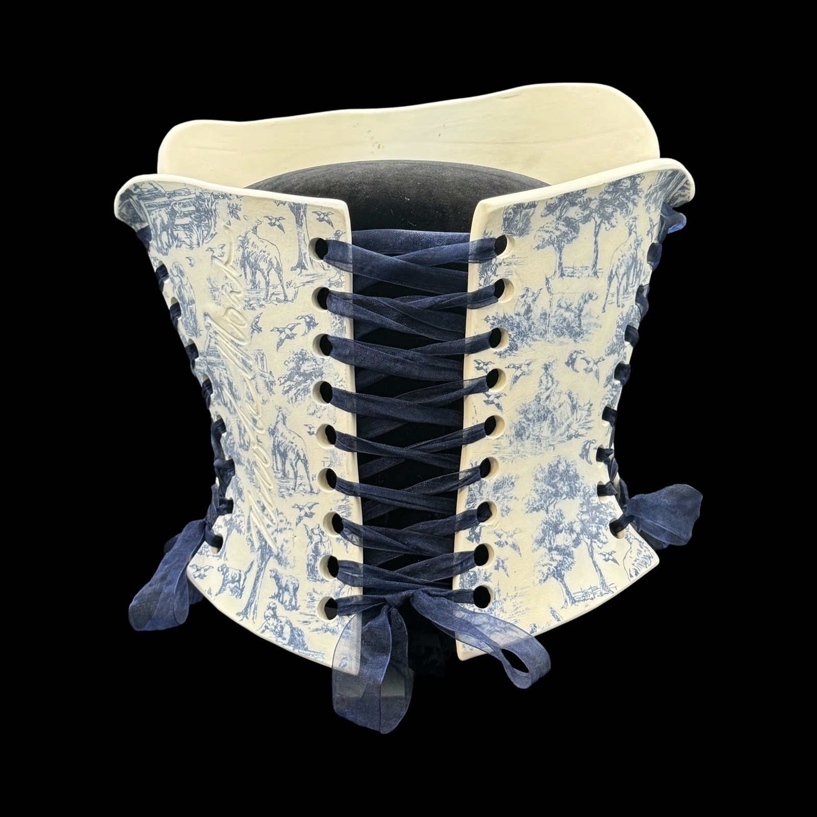 Blue Willow 3 piece wearable ceramic corset by: Nicole Moan