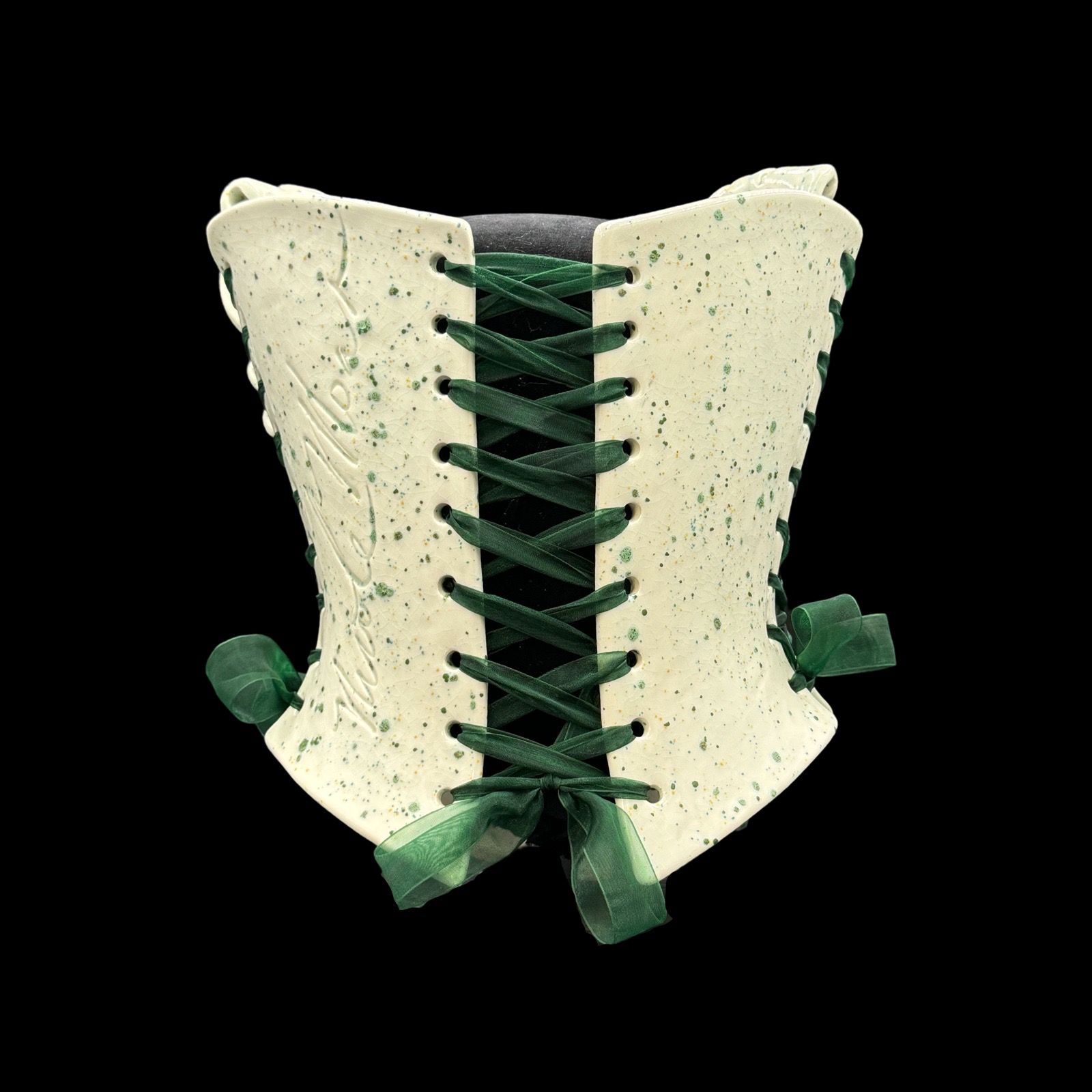 Nicole Moan Ceramic Corsets are all hand sculpted clay pieces, glazed with traditional pottery glazes. They are made to be worn or displayed as art. She creates custom pieces as well.