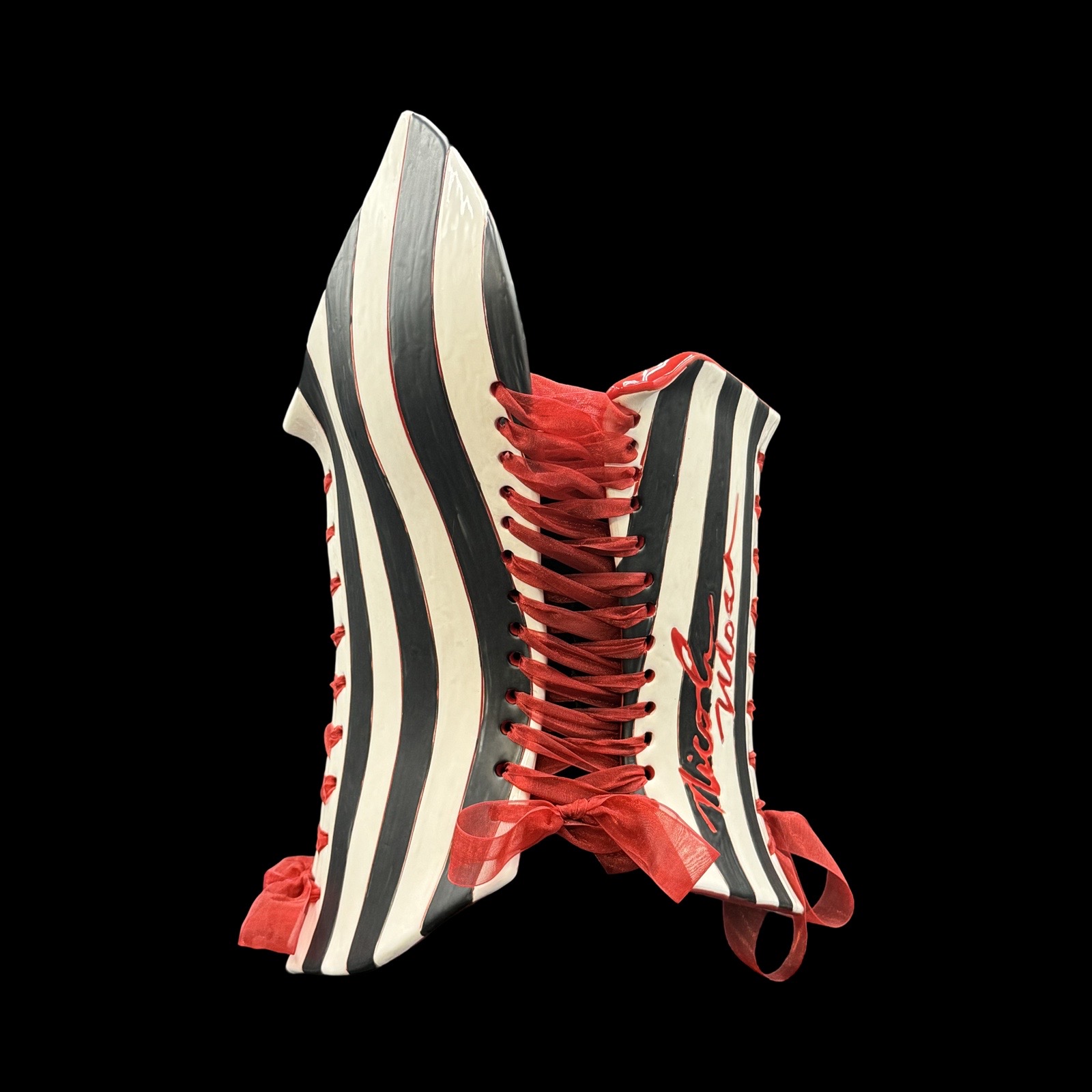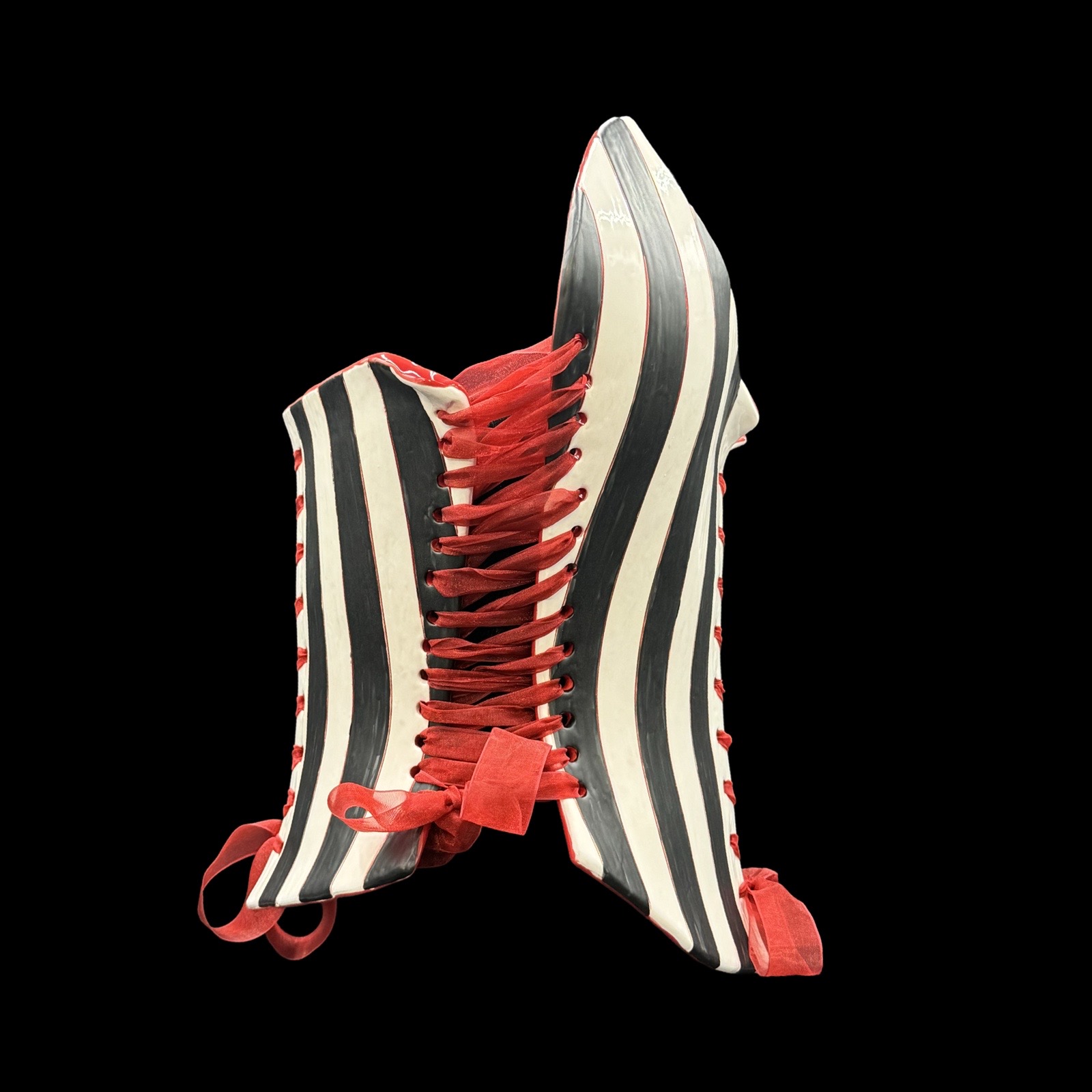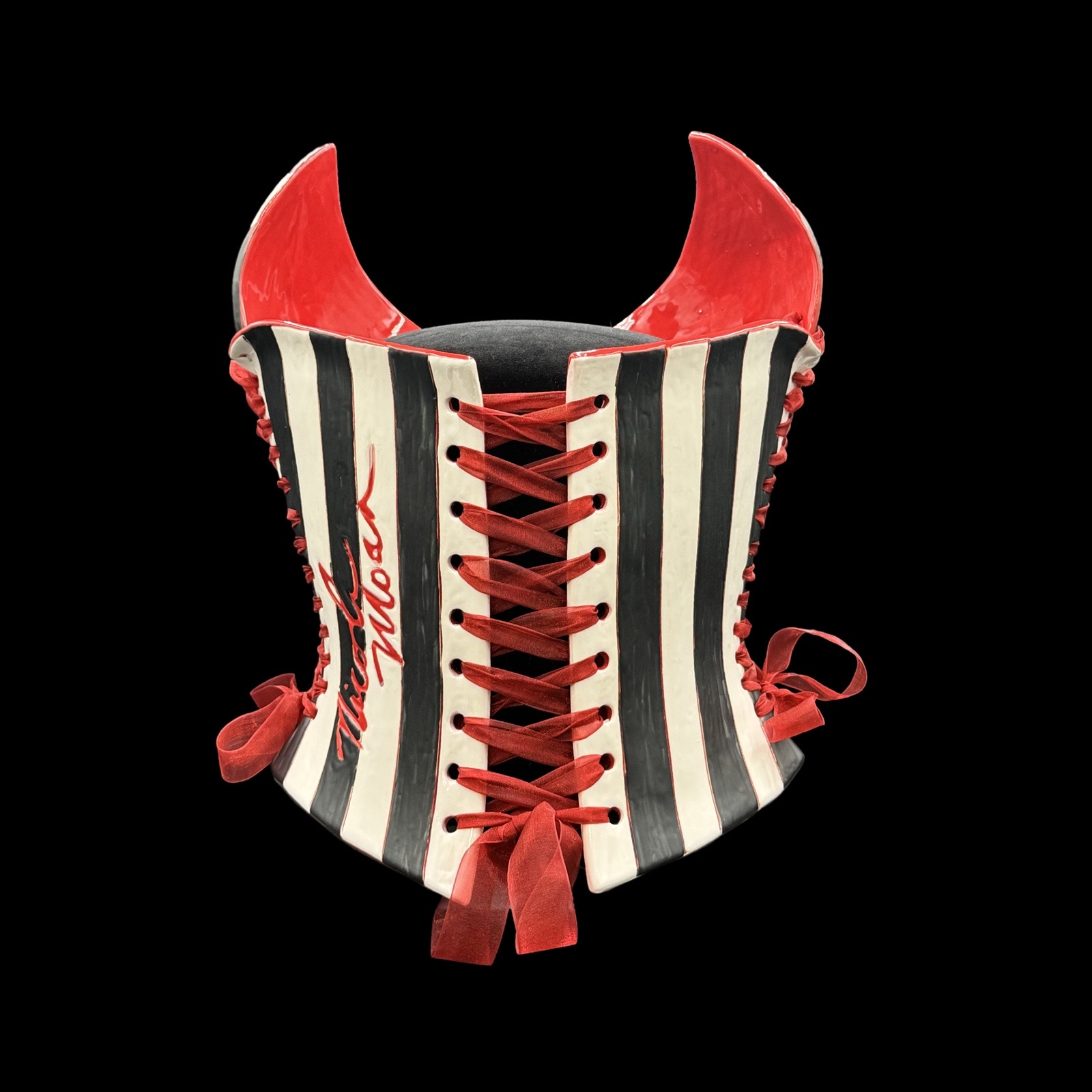 Nicole Moan Ceramic Corsets are all hand sculpted clay pieces, glazed with traditional pottery glazes. They are made to be worn or displayed as art. She creates custom pieces as well.