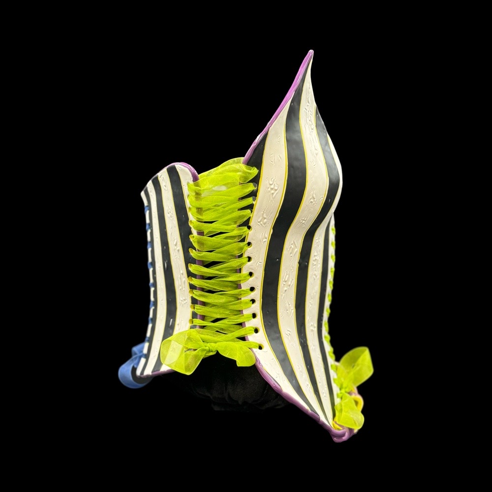 Nicole Moan Ceramic Corsets are all hand sculpted clay pieces, glazed with traditional pottery glazes. They are made to be worn or displayed as art. She creates custom pieces as well.