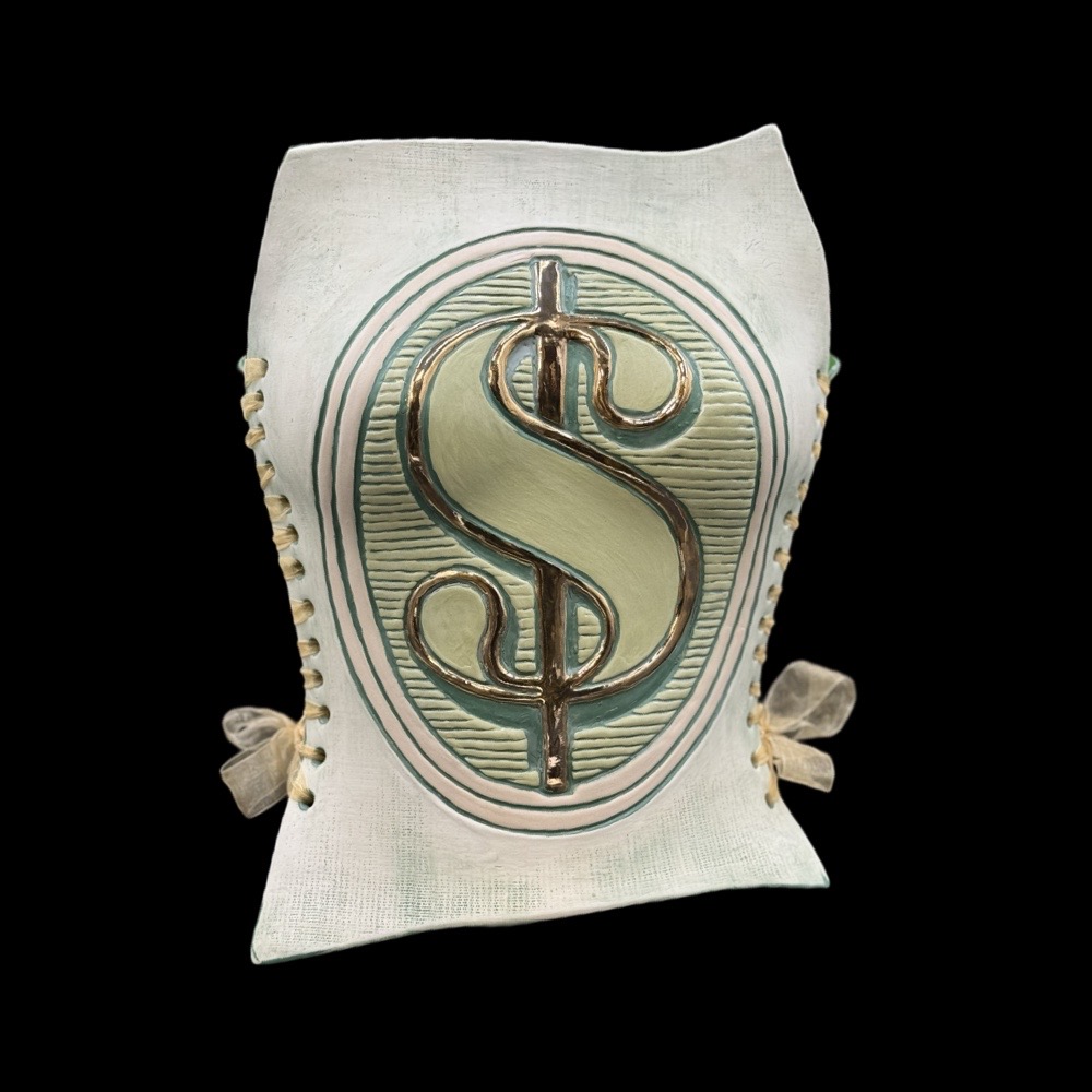 Money 3 piece wearable ceramic corset with 23k Gold detail by: Nicole Moan